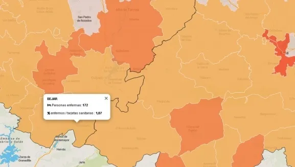 Los datos corresponden a la zona básica de salud de Béjar. Debe tenerse en cuenta que las zonas suelen abarcar más de un municipio, por lo que no debe olvidarse de que los datos corresponden a toda la zona y no exclusivamente al municipio. Los datos de número de afectados y el porcentaje de ellos en proporción al número de tarjetas sanitarias, son facilitados oficialmente por la Junta de Castilla y León.