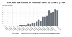 Respecto al número de fallecidos la mayor parte se sigue registrando en Salamanca, con 155, seguida en este caso de León, con 127; Valladolid, con 105; Segovia, con 88; Burgos, con 86; Ávila, con 64; Soria, con 46; Palencia, con 24, y Zamora, con 28.