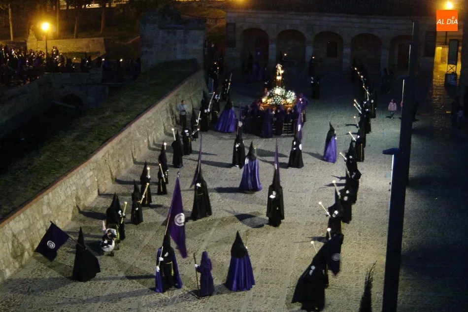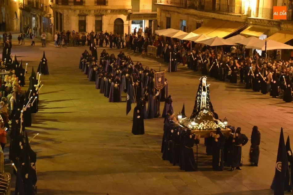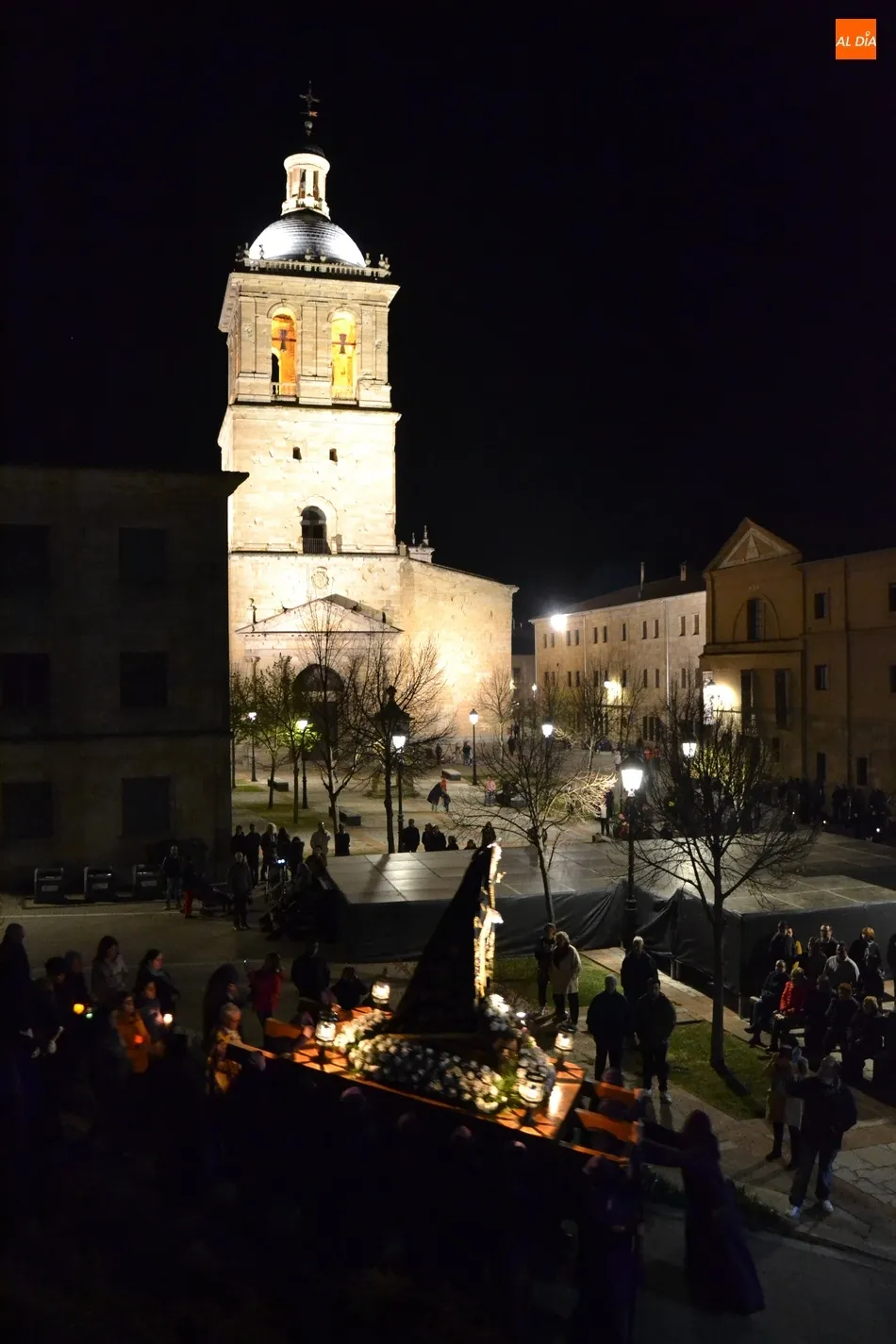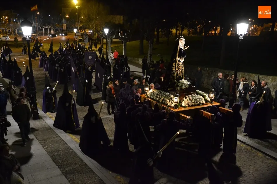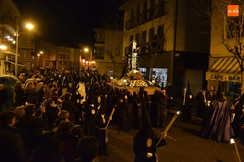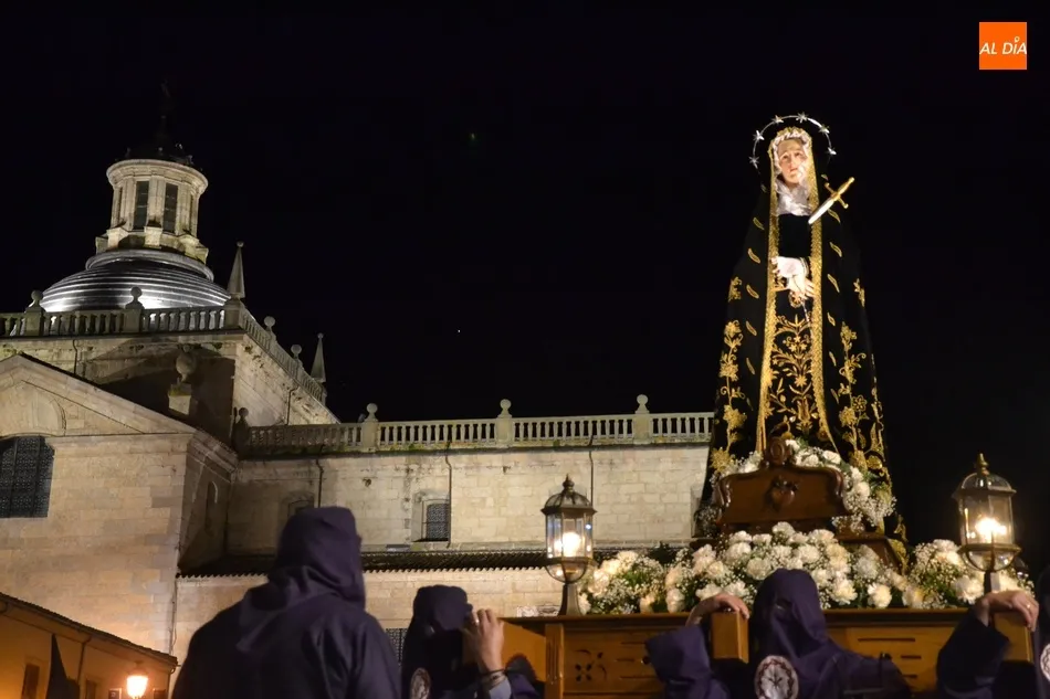 La Dolorosa siempre ha despertado mucha devoción, siendo habitual que vayan detrás suyo unas cuantas mujeres con velas, algunas de ellas descalzas, siempre en dirección a la Catedral de Santa María, excepto en 2006, cuando con motivo de los preparativos de la Seo para Las Edades del Hombre, tuvo como punto de llegada el Palacio Episcopal, de donde volvió a salir para las procesiones del Encuentro y Jesús Resucitado.