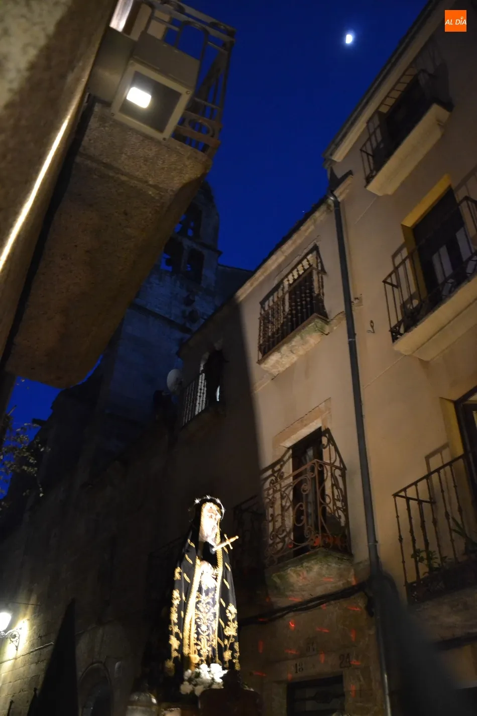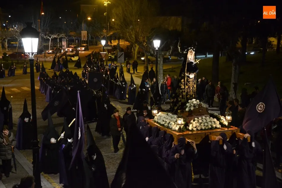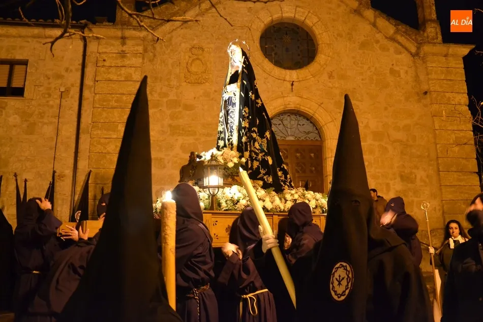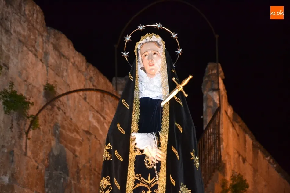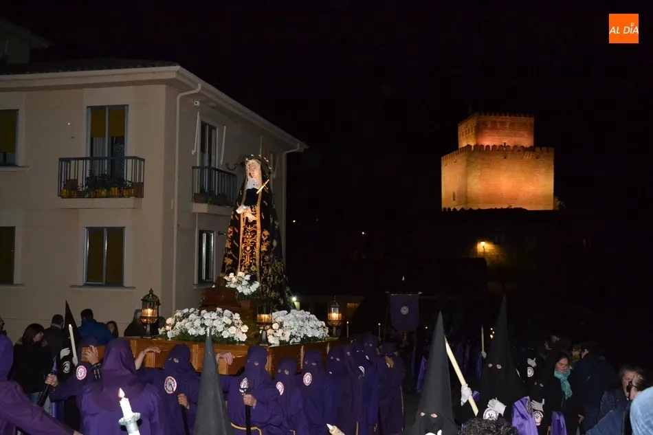 La procesión de La Dolorosa tiene como principal peculiaridad que cada año arranca en un templo diferente de Ciudad Rodrigo, habitualmente fuera de murallas. Este modelo viene del año 1991, cuando la Cofradía tomó la decisión de romper la monotonía de salir siempre de la Iglesia de San Agustín como ocurría hasta entonces y hacer partícipes de la Semana Santa a todos los barrios de la ciudad.
