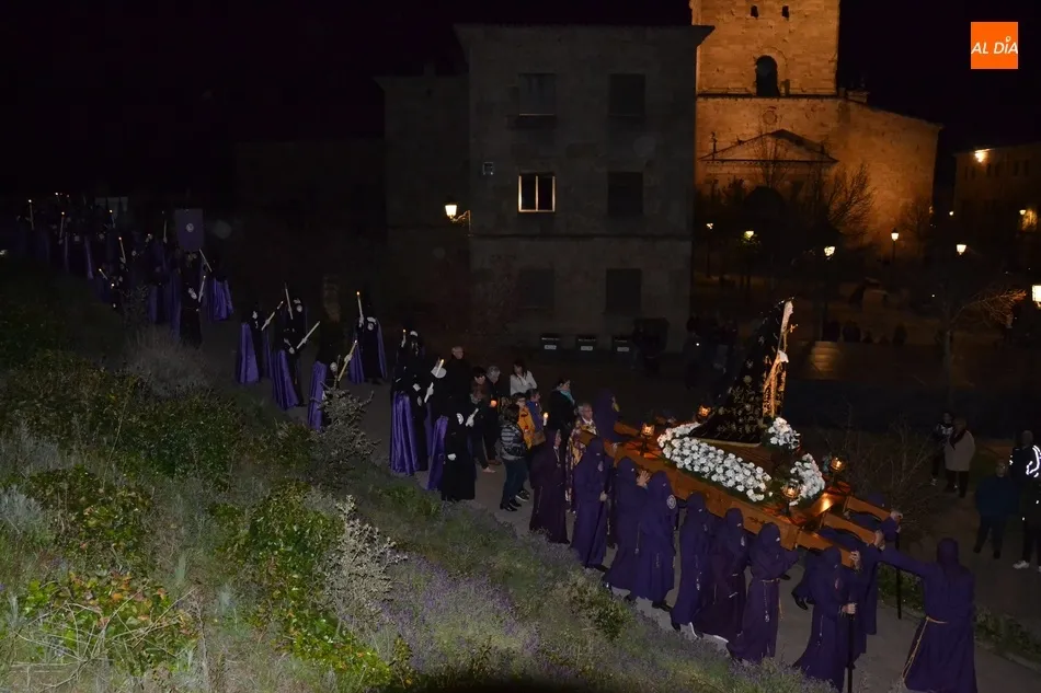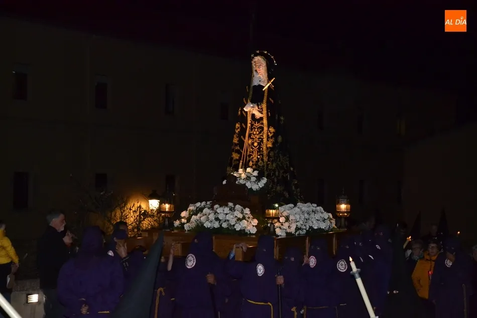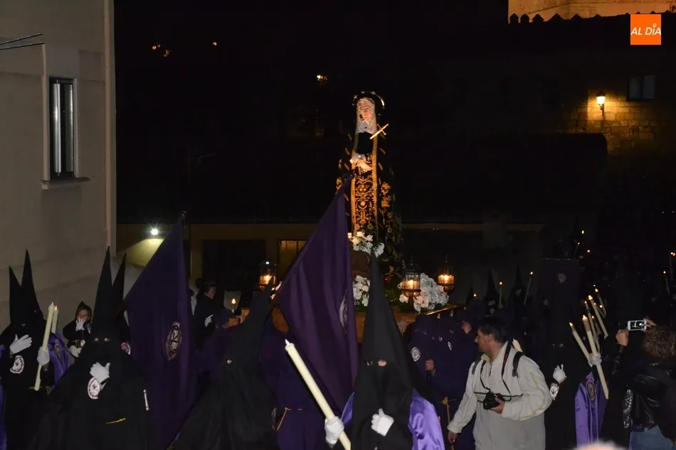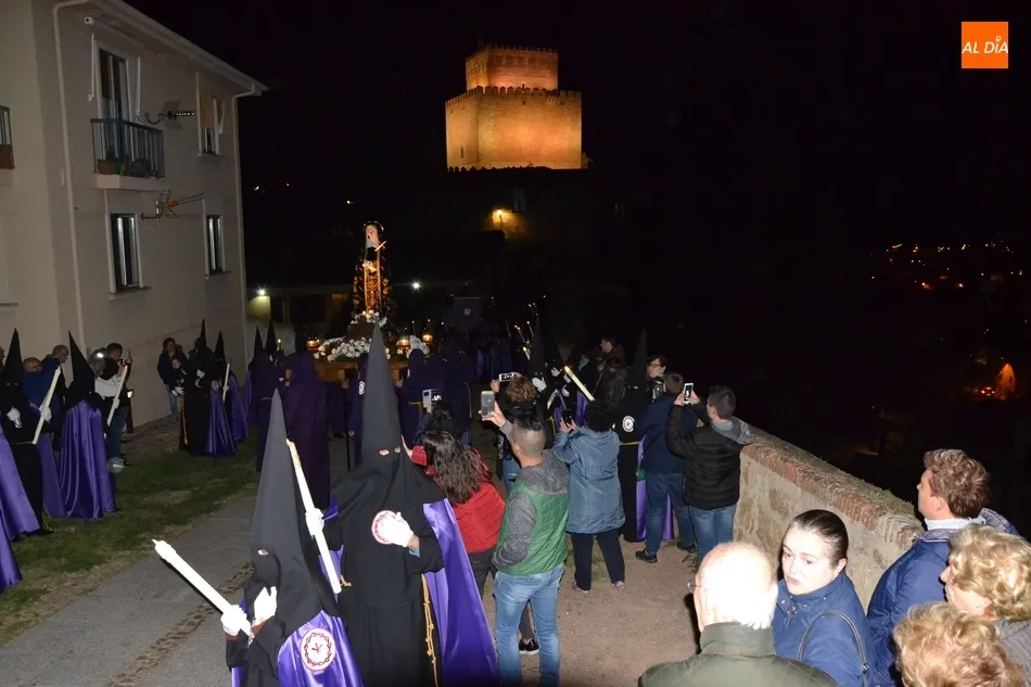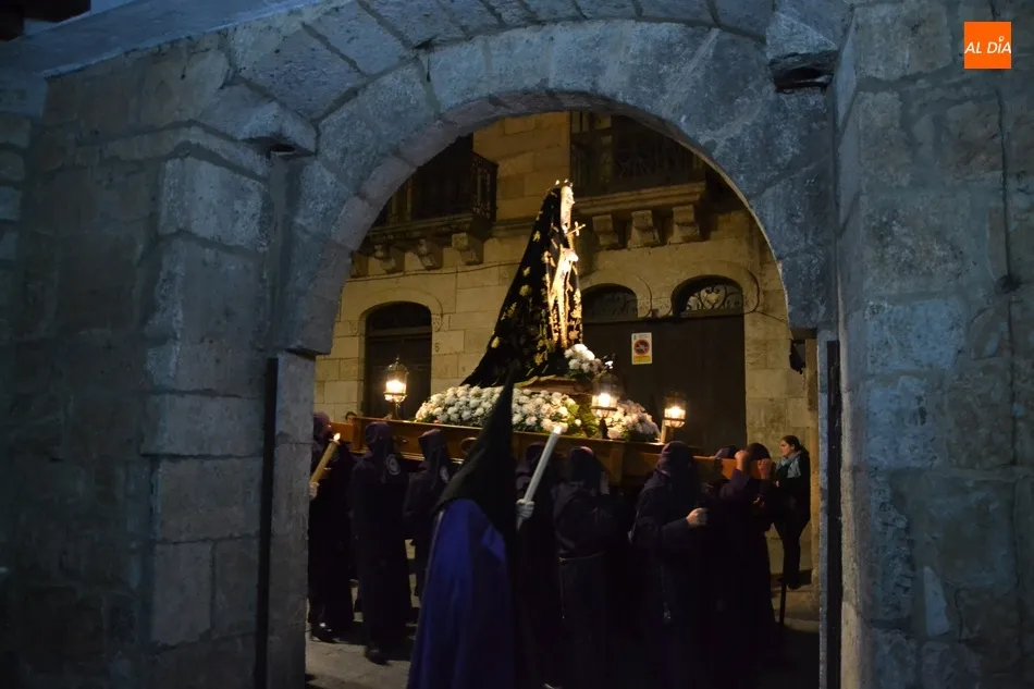 La procesión de La Dolorosa tiene como principal peculiaridad que cada año arranca en un templo diferente de Ciudad Rodrigo, habitualmente fuera de murallas. Este modelo viene del año 1991, cuando la Cofradía tomó la decisión de romper la monotonía de salir siempre de la Iglesia de San Agustín como ocurría hasta entonces y hacer partícipes de la Semana Santa a todos los barrios de la ciudad.