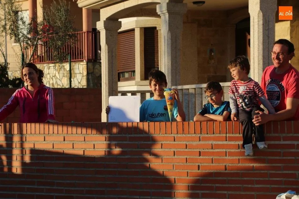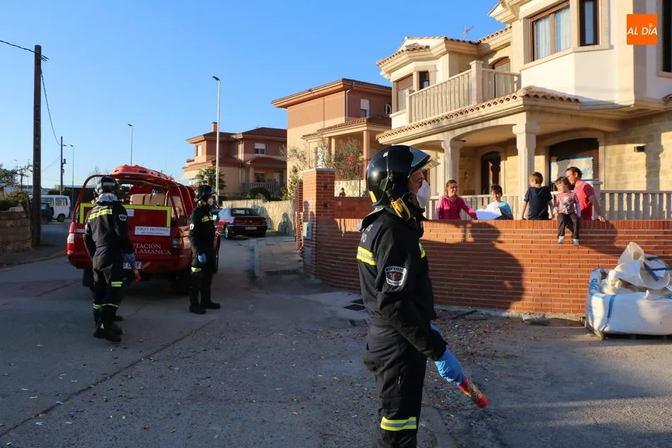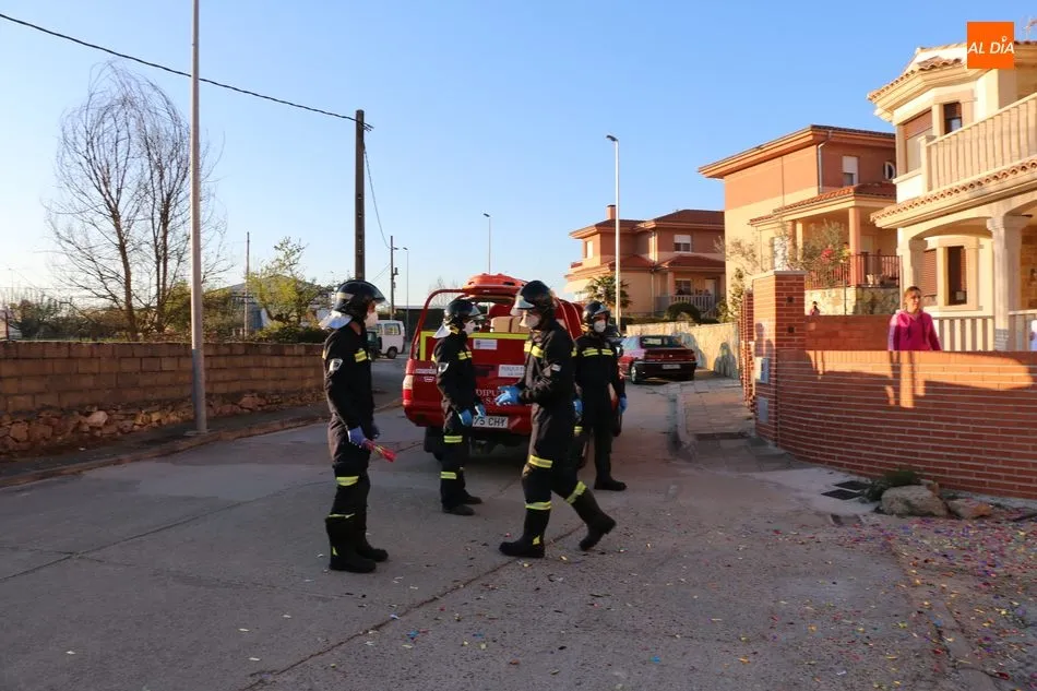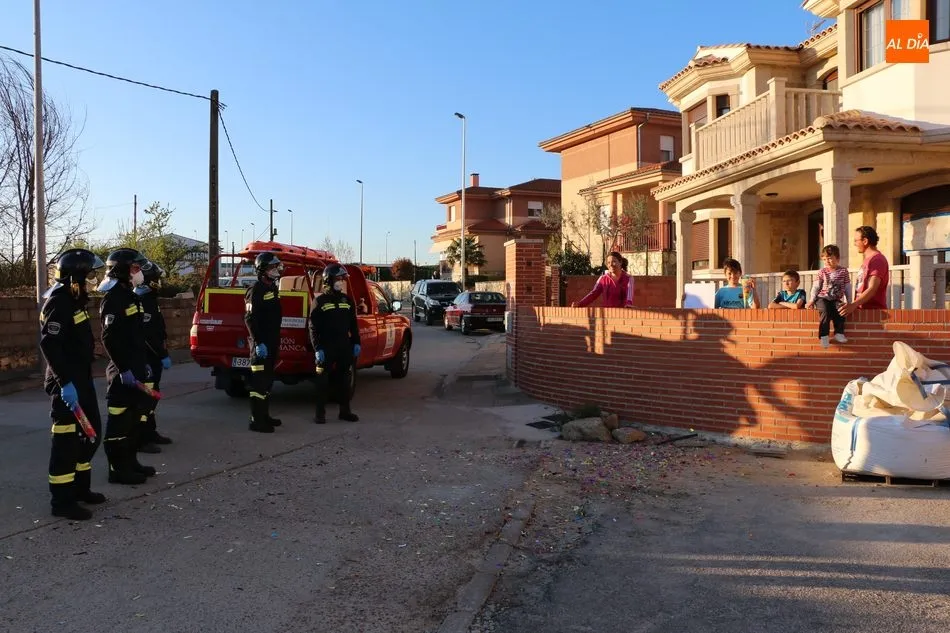 Los Bomberos de Vitigudino llegaban con dos vehículos, uno de acción rápida y un camión autobomba, haciendo sonar el famoso tema del grupo Parchís para finalizar con el lanzamiento de confetis para felicitar a Fran, que parecía no creerse lo que estaba viendo junto a sus padres y sus hermanos Alejandro y Rodrigo.