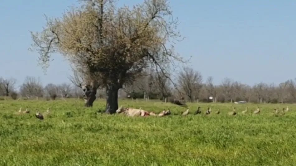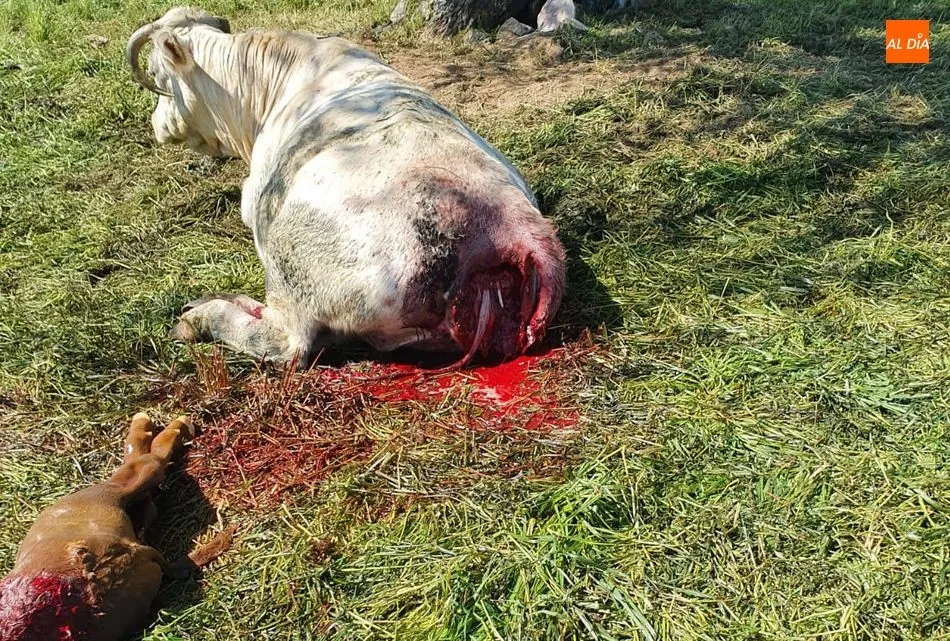 Una gran bandada de buitres acababa este viernes en Valderrodrigo con la vida de una vaca y su ternero en el momento del parto. La propietaria de la explotación, I. C. V., pudo observar un gran número de estas aves sobre sendos animales, aunque el becerro estaba ya sin vida.