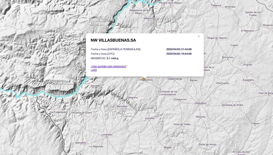 De magnitud 2,1 y de una profundidad de 1 km, de acuerdo con la misma fuente, el terremoto se ha dejado sentir en municipios próximos de la comarca de Vitigudino como Barruecopardo y Cabeza del Caballo, asustando también a sus vecinos.