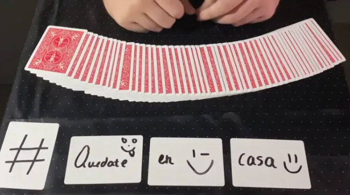 Ha creado un truco de cartas en el que va apareciendo el mensaje #Quédateencasa