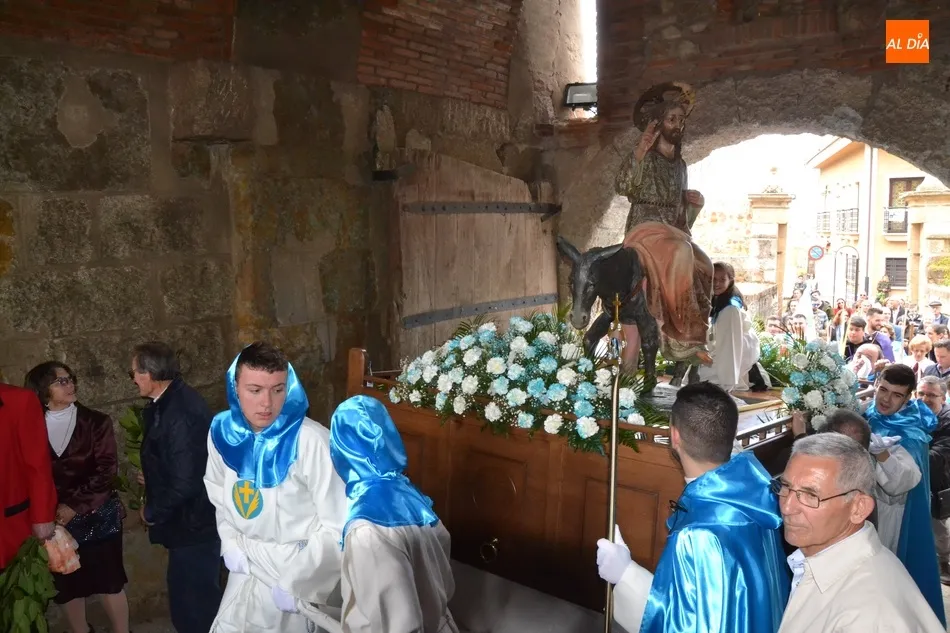 La procesión de La Borriquilla que vive Ciudad Rodrigo cada Domingo de Ramos por la mañana tiene como primera peculiaridad que es la única de la Semana Santa Mirobrigense que sale de forma fija de fuera de murallas (algunos años lo hacen también La Dolorosa y el Resucitado), cruzando además el Águeda para dirigirse al centro histórico, porque la Cofradía tiene su sede en la Parroquia de Santa Marina, en el Arrabal del Puente. Allí se fundó la actual Cofradía en el año 1988, cuando era responsable de la Parroquia Manuel Peláez Muñoz.
