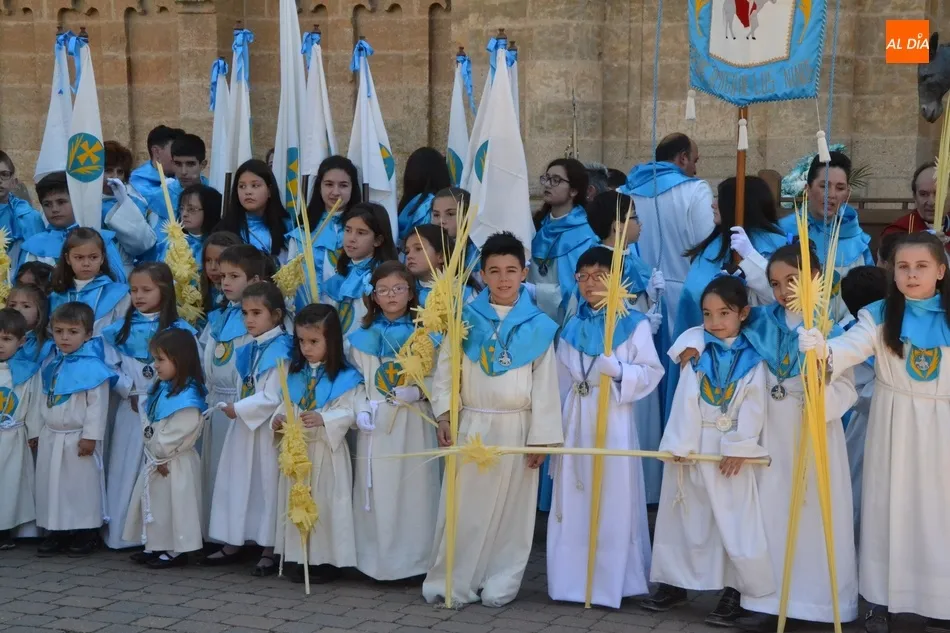 El siguiente dato histórico es la ya mencionada fundación de la Cofradía en el año 1988. Desde entonces, procesionan en la mañana del Domingo de Ramos, aunque en los primeros años (parece que hasta 1994), La Borriquilla no acababa su procesión en la Catedral, sino que tras su paso por la Plaza Mayor ?donde el Obispo dirige un mensaje a los niños y suena el Reloj Suelto- regresaba a su Parroquia, de donde volvía a subir al centro para la procesión de La Carrera.