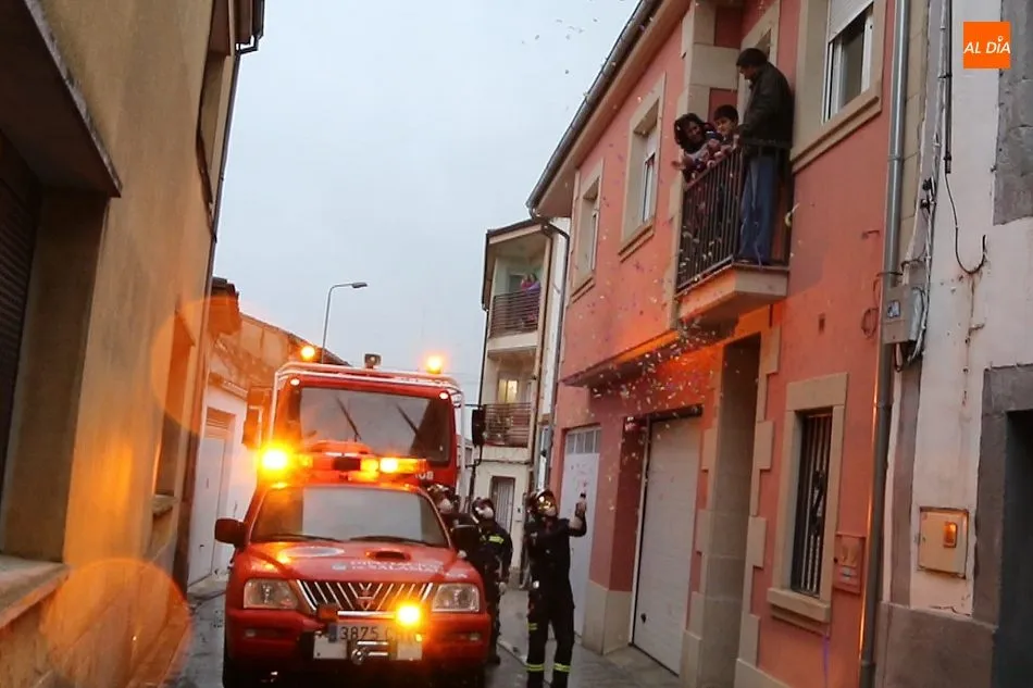 Primero fue Alexia en la Avenida de Salamanca, después Fran en calle Asadura y este domingo, 5 de abril, le llegaba el turno a Irene Vicente Hernández en el nº 12 de la calle Convento, lugar en el que los Bomberos de Vitigudino la felicitaban por su sexto cumpleaños pasadas las ocho de la tarde y bajo un fuerte aguacero.