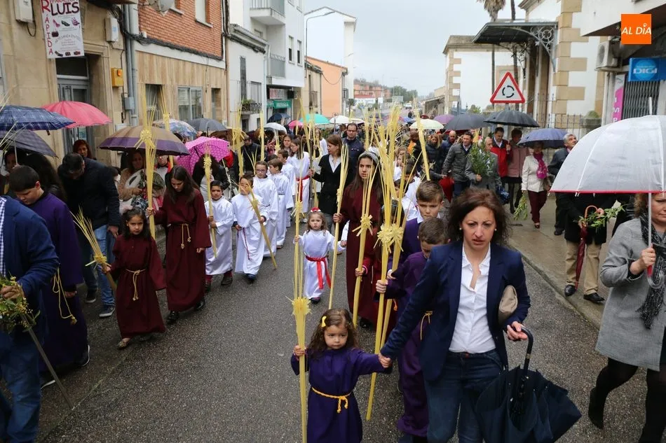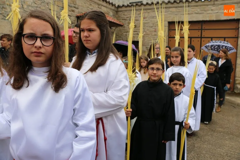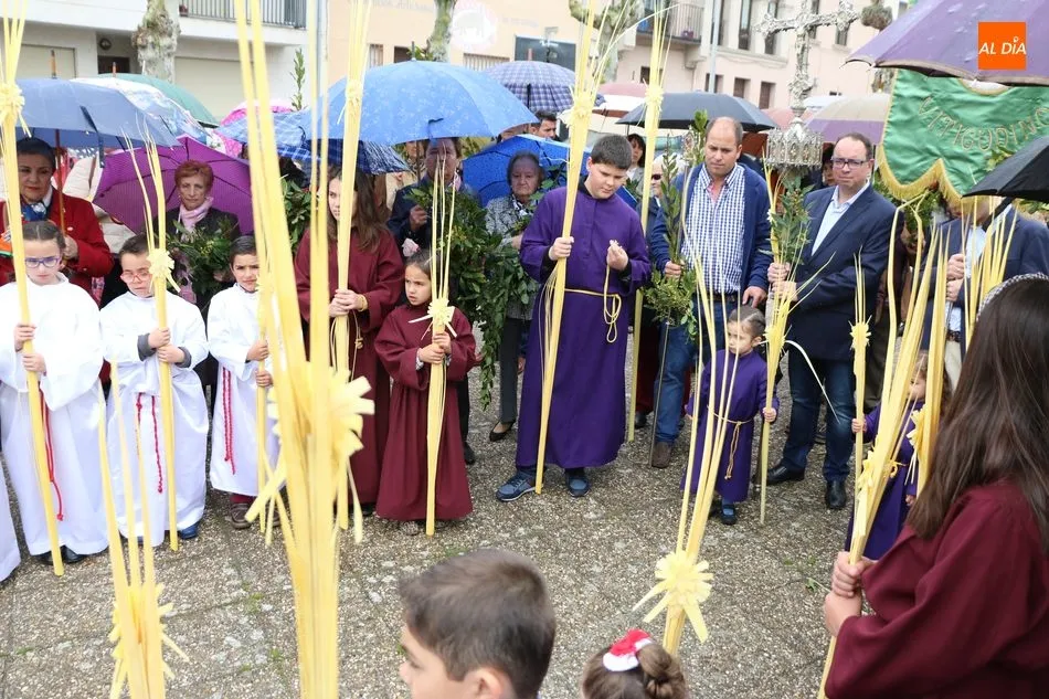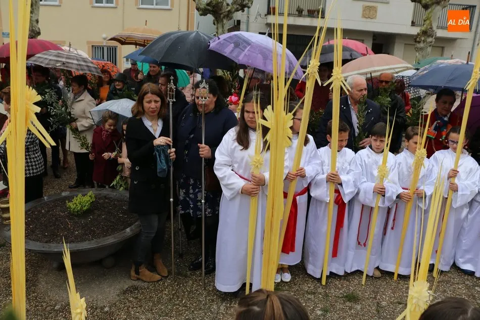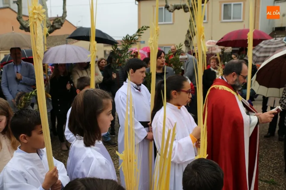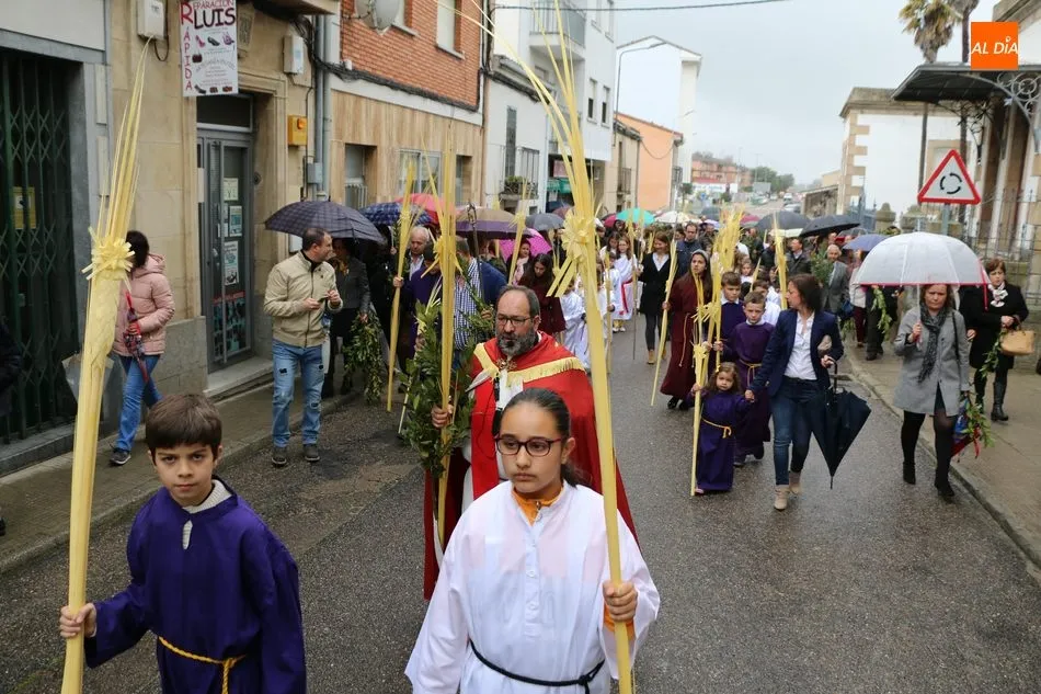 Los actos comienzan en la plaza del Convento, lugar al que acuden los fieles a la bendición de ramos, en su mayoría distribuidos por la Cofradía San Nicolás de Bari. Una vez bendecidos los ramos, comienza la procesión hacia la iglesia parroquial donde tiene lugar la eucaristía.