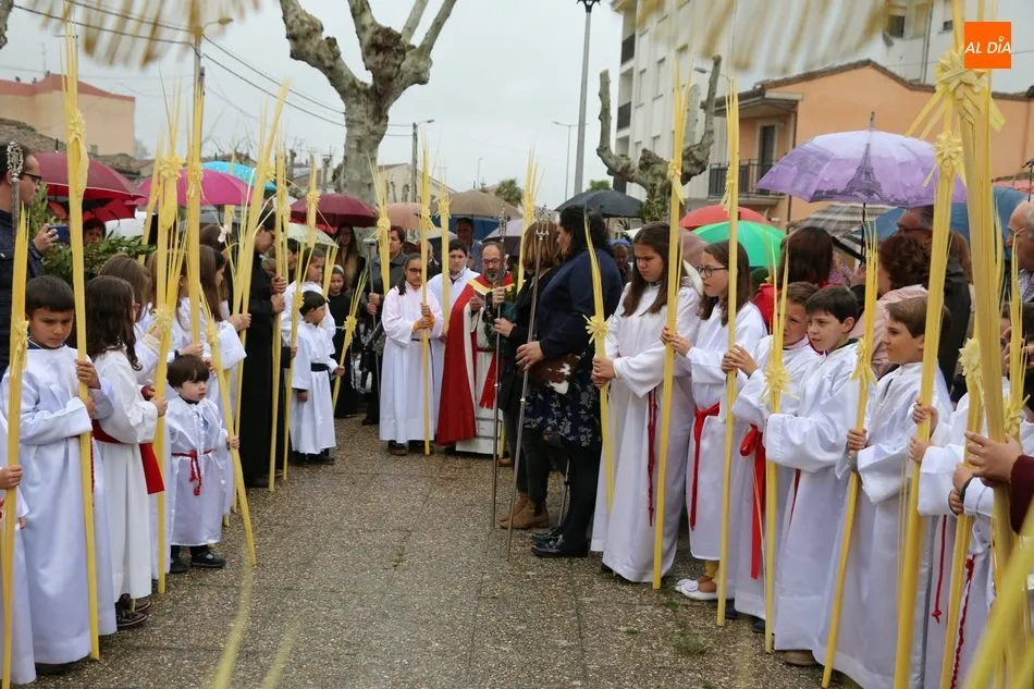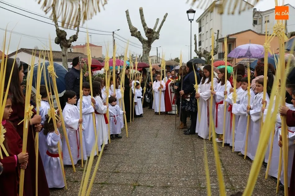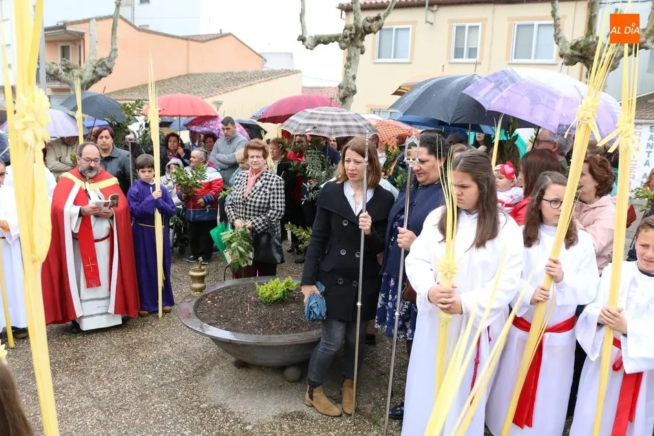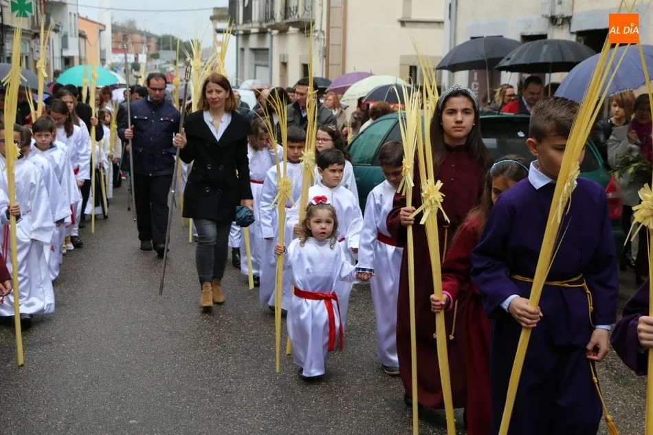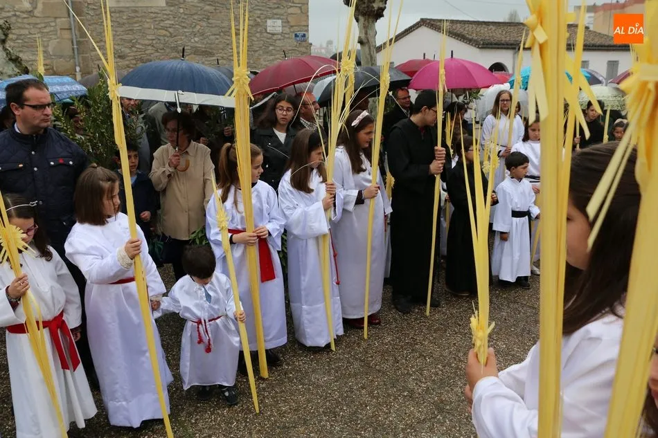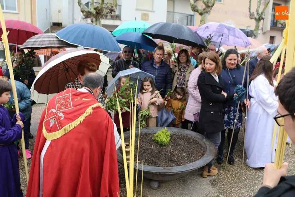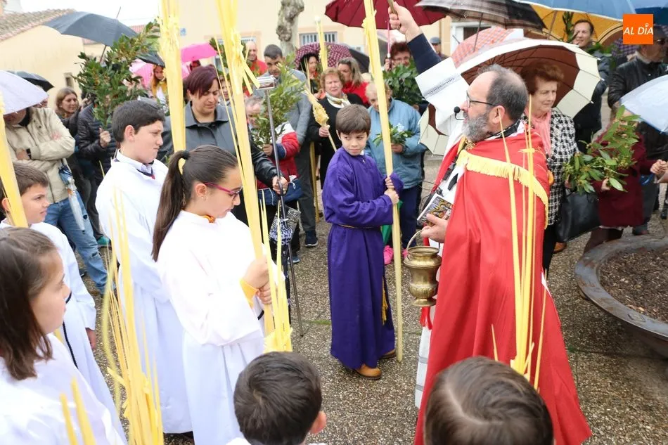 Los actos comienzan en la plaza del Convento, lugar al que acuden los fieles a la bendición de ramos, en su mayoría distribuidos por la Cofradía San Nicolás de Bari. Una vez bendecidos los ramos, comienza la procesión hacia la iglesia parroquial donde tiene lugar la eucaristía.