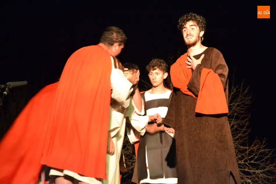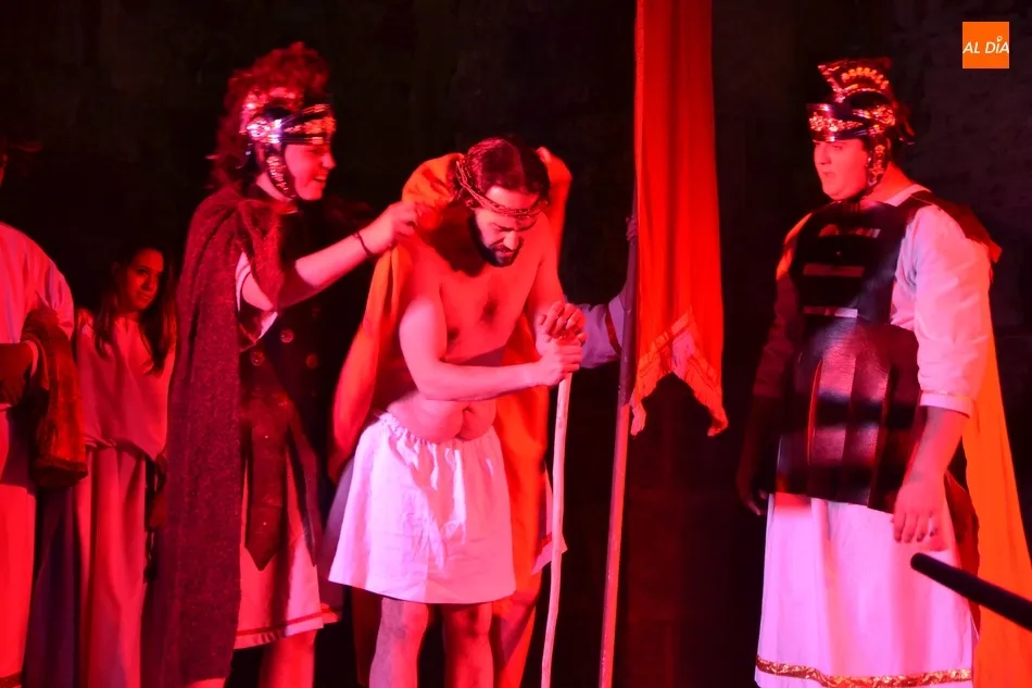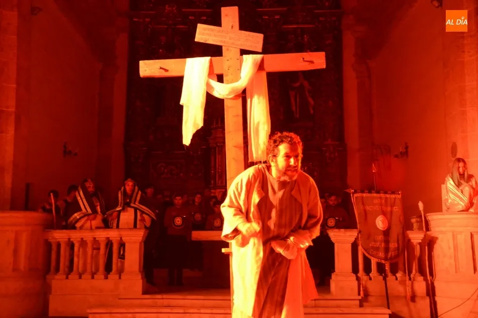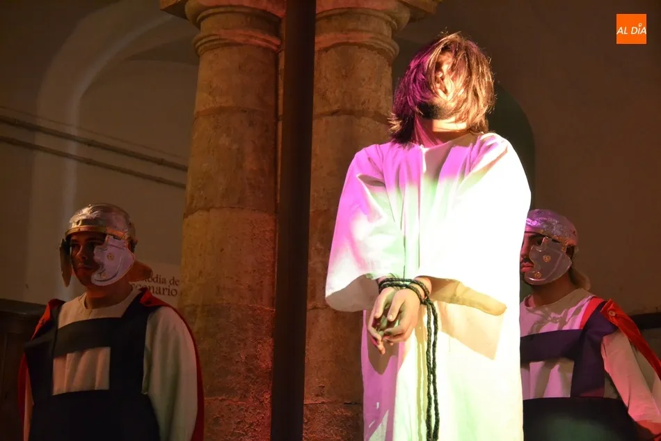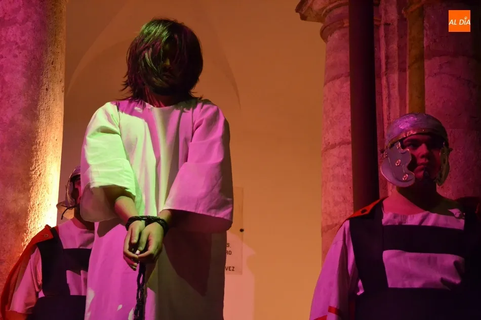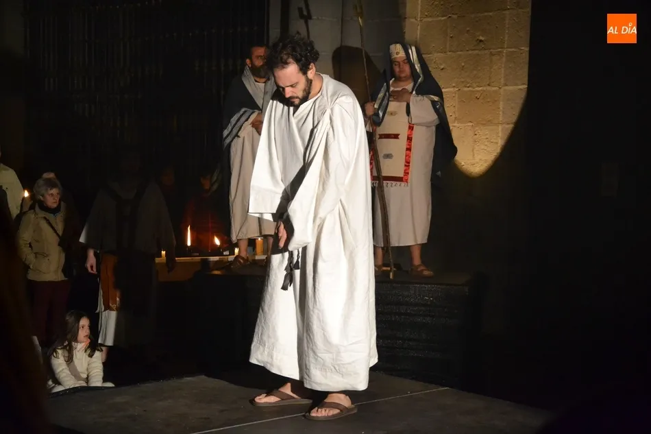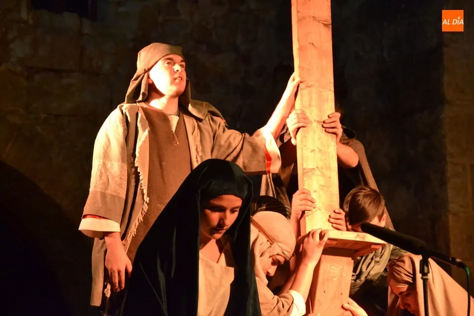 Más de un cuarto de siglo con la Cruz a cuestas para darle esperanza al territorio diocesano   | Imagen 2En 2018, se vivió un momento muy especial, ya que con motivo de las Bodas de Plata de La Pasión (incluso fueron los pregoneros de la Semana Santa) hubo una histórica representación en Ciudad Rodrigo. La idea era hacerla al aire libre (en la Plazuela de Herrasti, el Claustro de la Catedral, la Plaza de Amayuelas y el foso de la muralla), pero como ha ocurrido algún otro año, el mal tiempo obligó a hacerla a cubierto en la Seo y el Seminario.