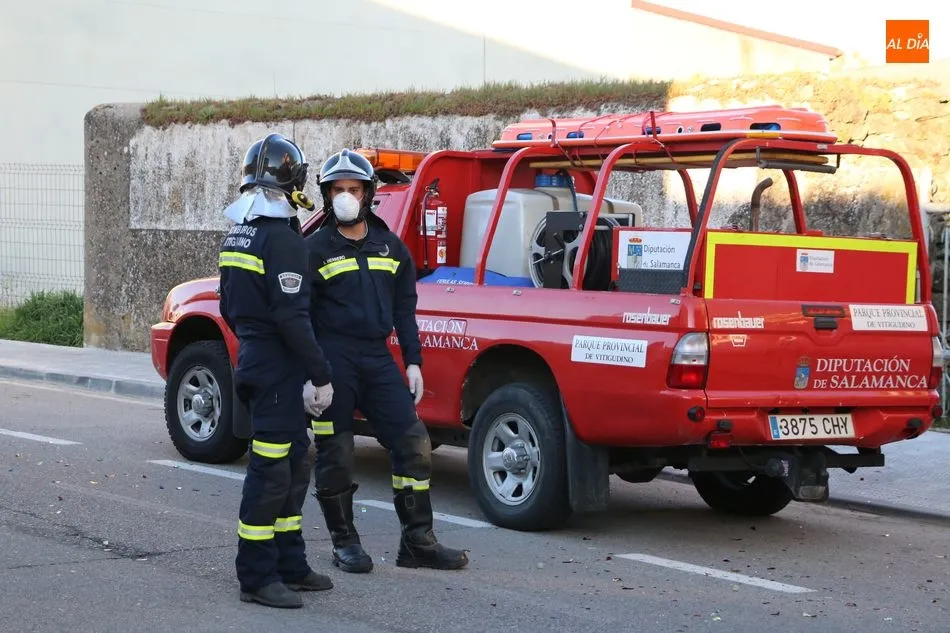 De este modo, los Bomberos de Vitigudino ayudan a los más pequeños a olvidar por unos minutos los días de confinamiento en sus casas, una iniciativa que agradecen niños y padres.
