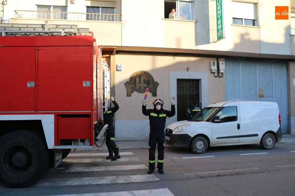 Tras Irene el pasado domingo en la calle Convento, este martes, 7 de abril, le llegaba el turno a Ana Gómez en el nº 8 de la calle Matadero, lugar en el que los Bomberos de Vitigudino la felicitaban por su noveno cumpleaños pasadas las ocho de la tarde. El momento llegaba después de que sus vecinos hicieran chocar las palmas de sus manos para aplaudir a todos aquellos profesionales que están en primera línea para intentar frenar el coronavirus.