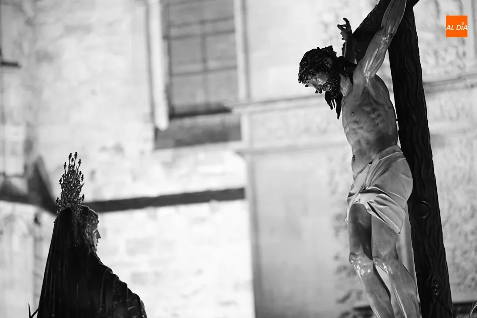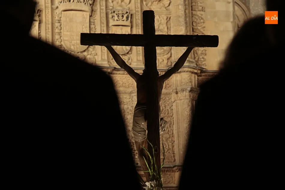 La imagen del Cristo de la Luz y la Virgen de la Sabiduría, con el fondo de la fachada plateresca de la Universidad, es una de las imágenes más representativas de la Semana Santa