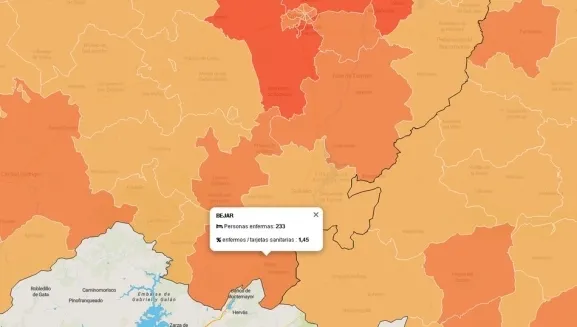 Los datos corresponden a la zona básica de salud de Béjar. Debe tenerse en cuenta que las zonas suelen abarcar más de un municipio, por lo que no debe olvidarse de que los datos corresponden a toda la zona y no exclusivamente al municipio. Los datos de número de afectados y el porcentaje de ellos en proporción al número de tarjetas sanitarias, son facilitados oficialmente por la Junta de Castilla y León