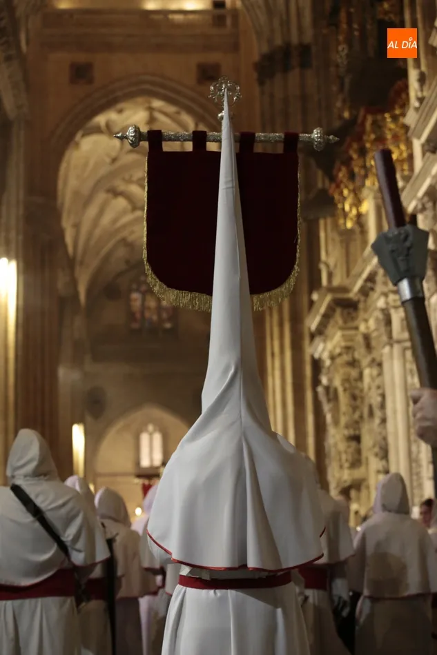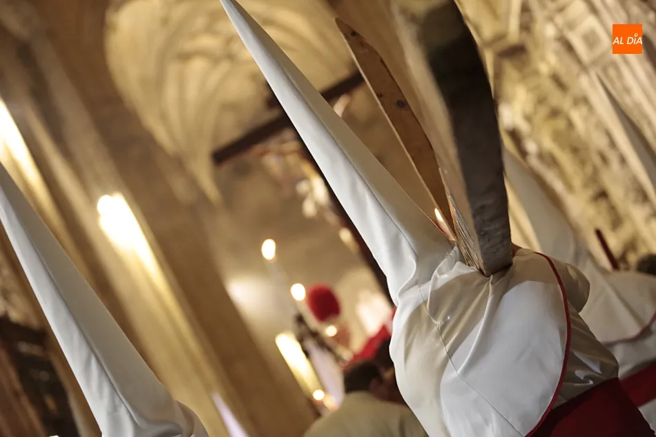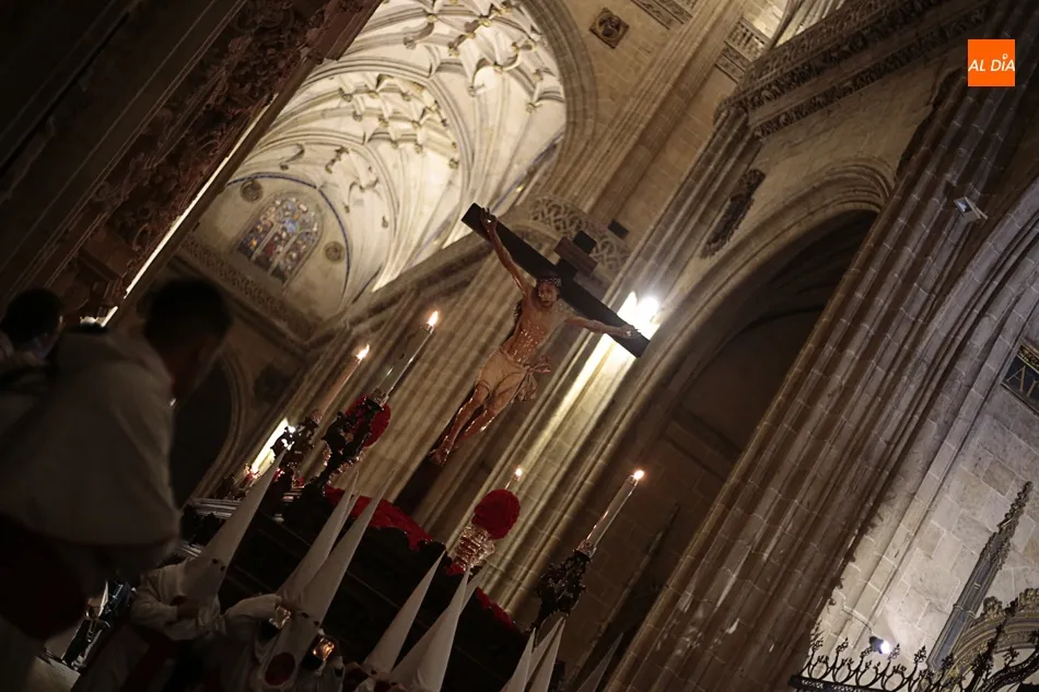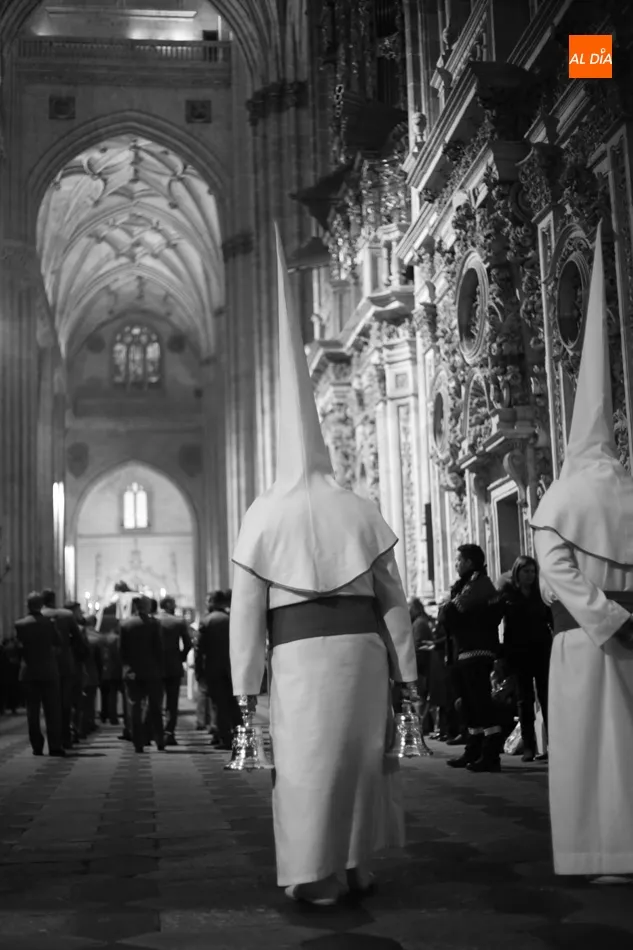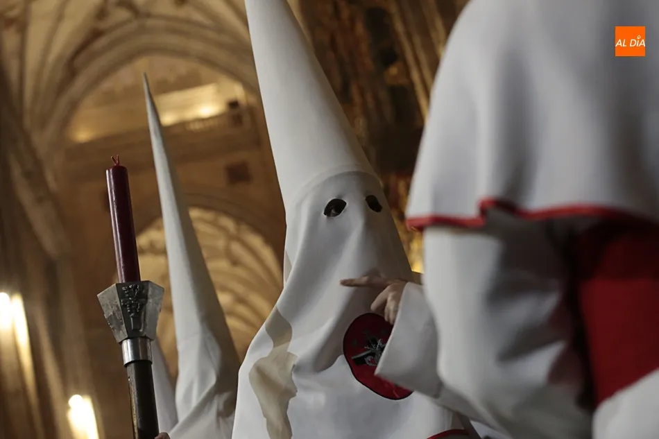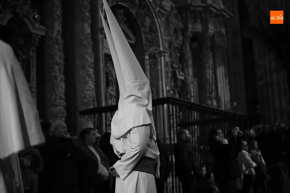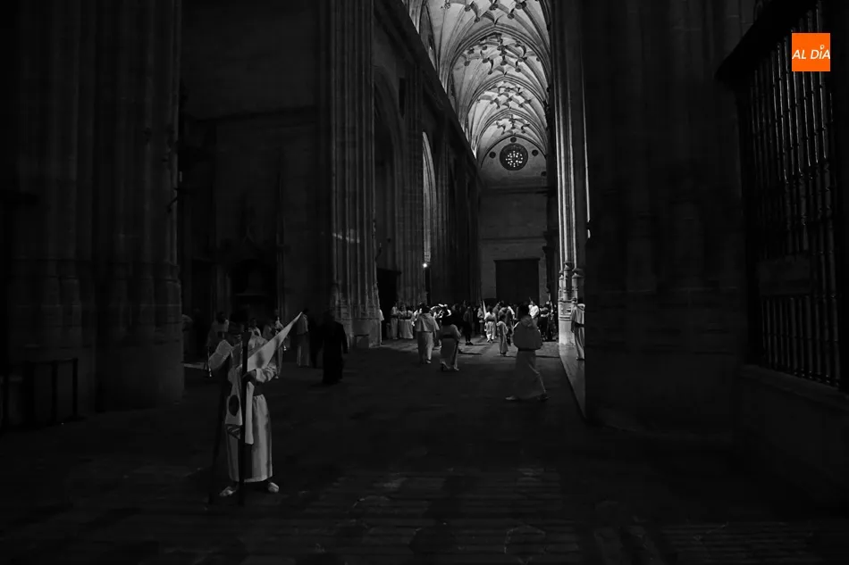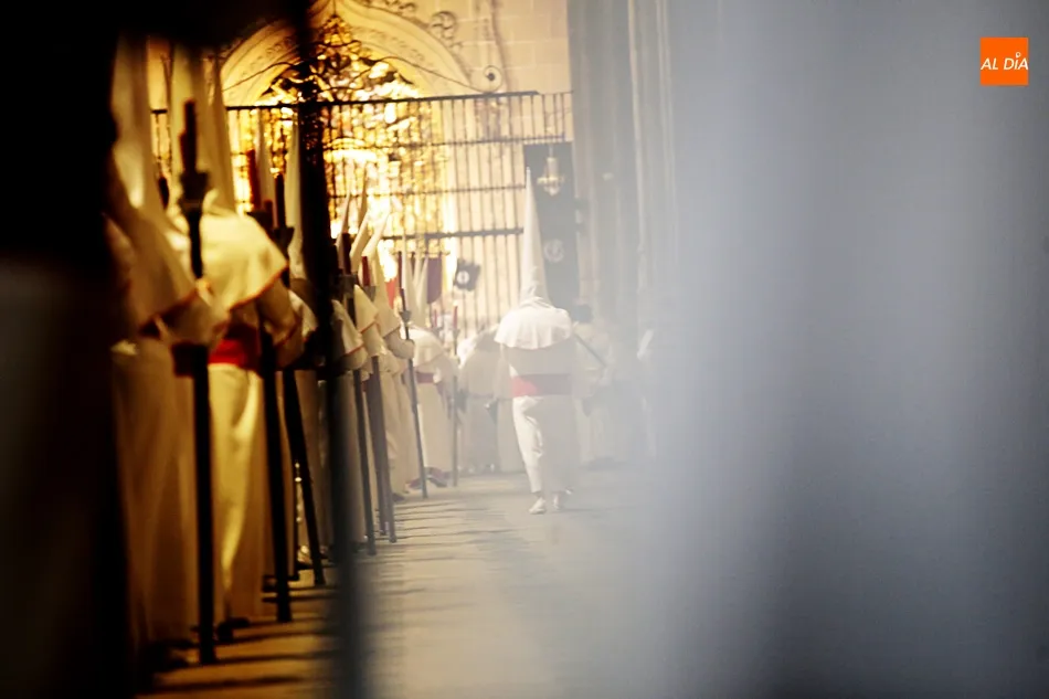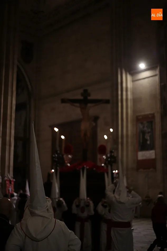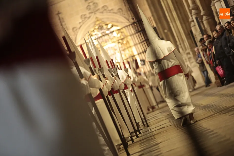 Miércoles Santo sin procesiones por la lluvia. La Real Cofradía Penitencial del Cristo Yacente de la Misericordia y de la Agonía Redentora tampoco han podido salir esta media noche por las calles del casco histórico de Salamanca. Cientos de personas esperaban la salida de los pasos que, finalmente, han permanecido en el interior de la Catedral. Tanto la Promesa del Silencio, en la que ha participado el alcalde de Salamanca, Carlos García Carbayo, como el Vía Crucis, se han celebrado dentro.