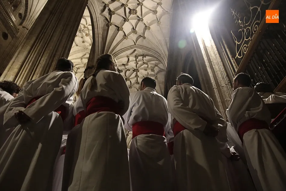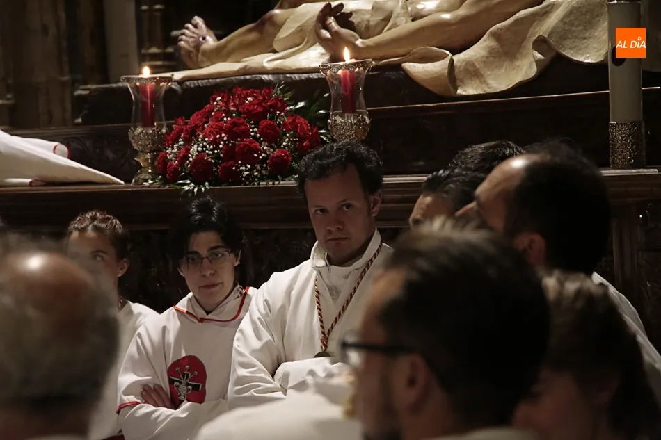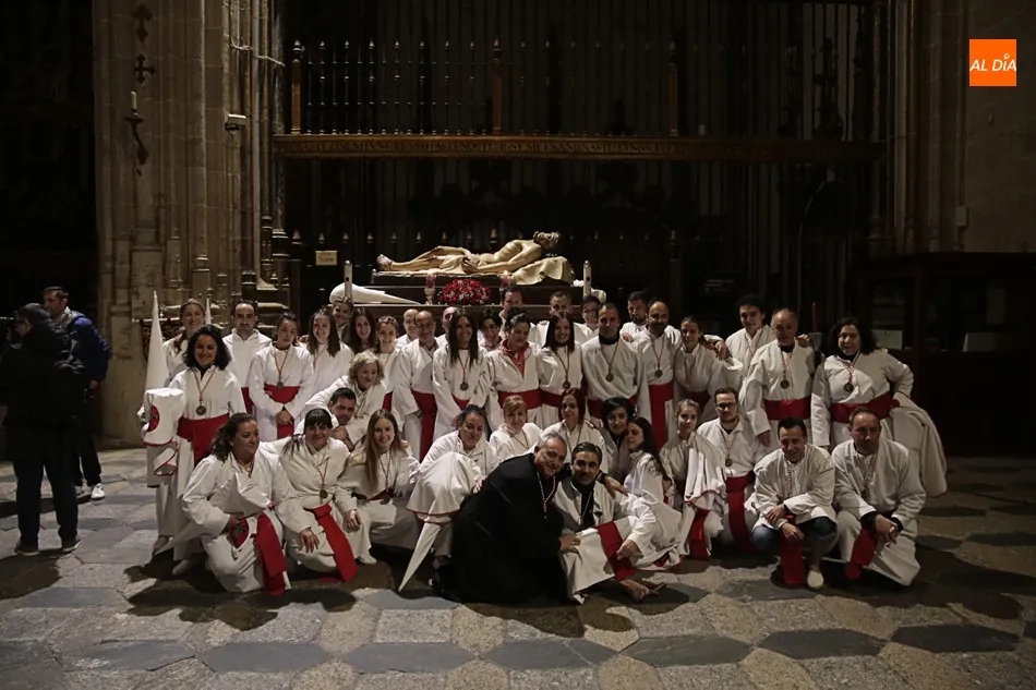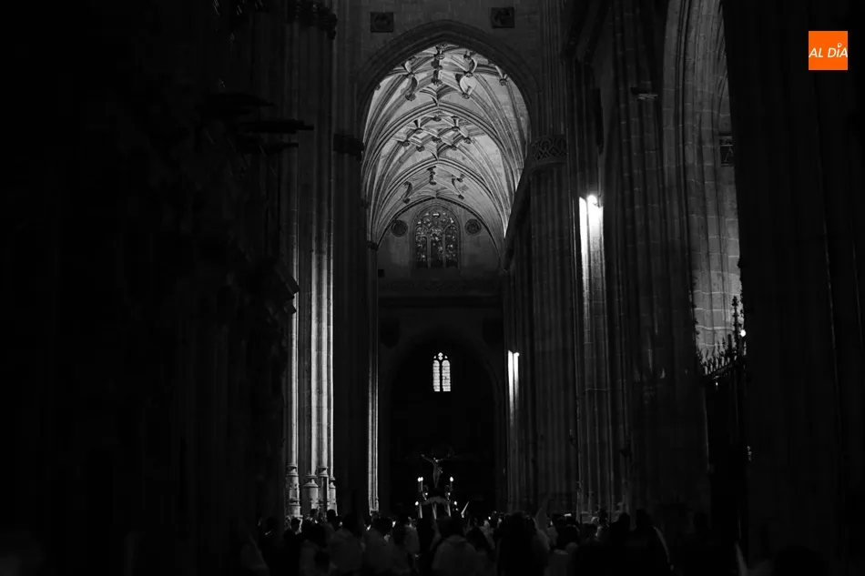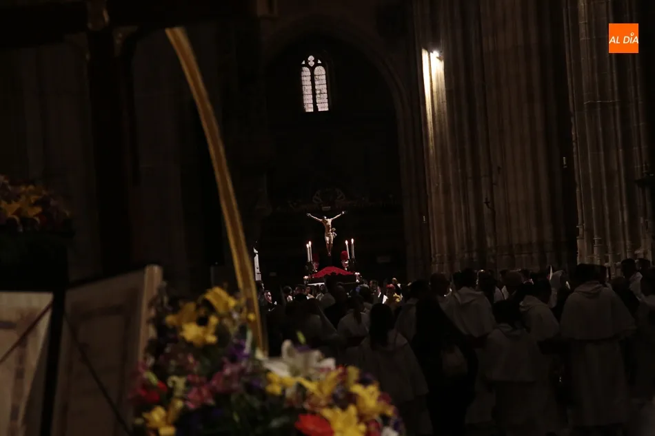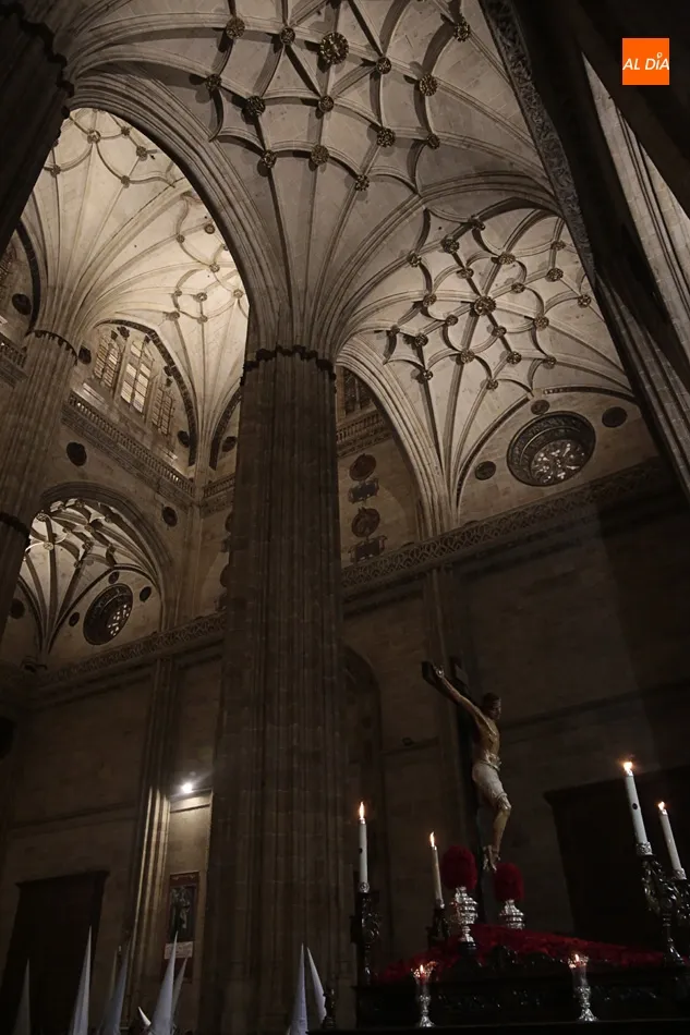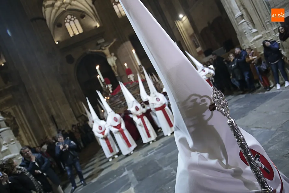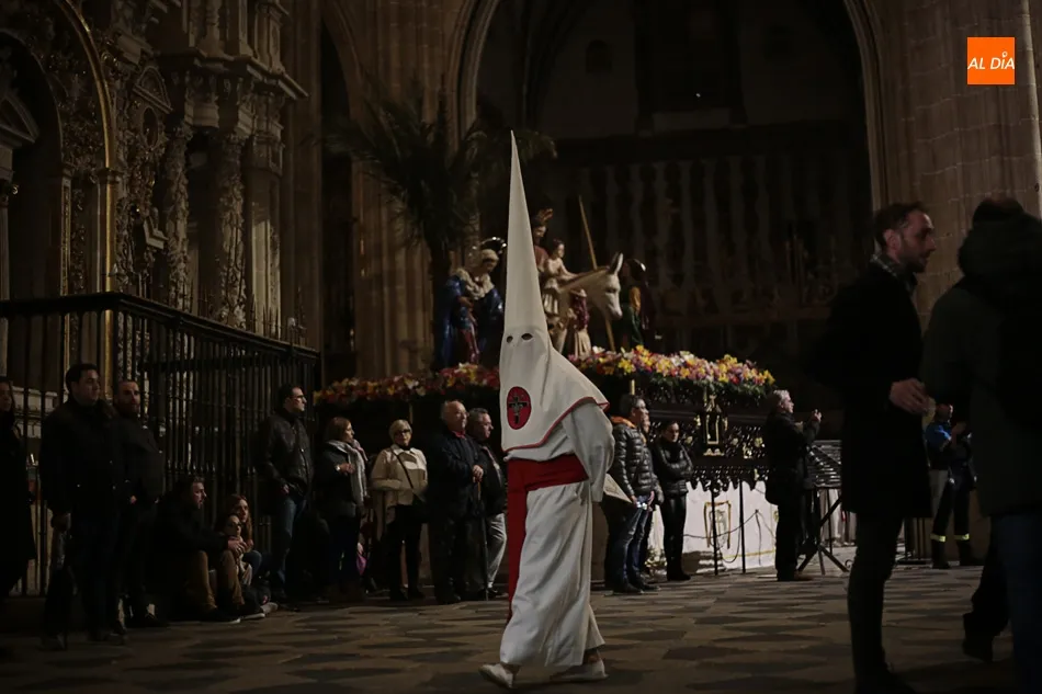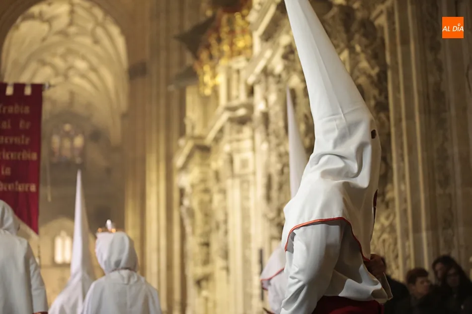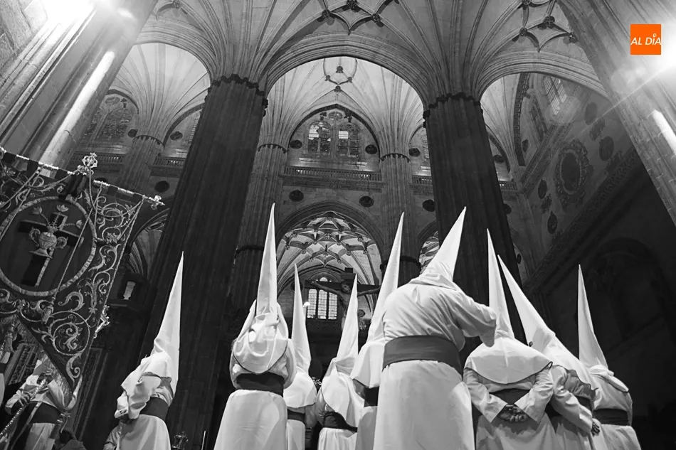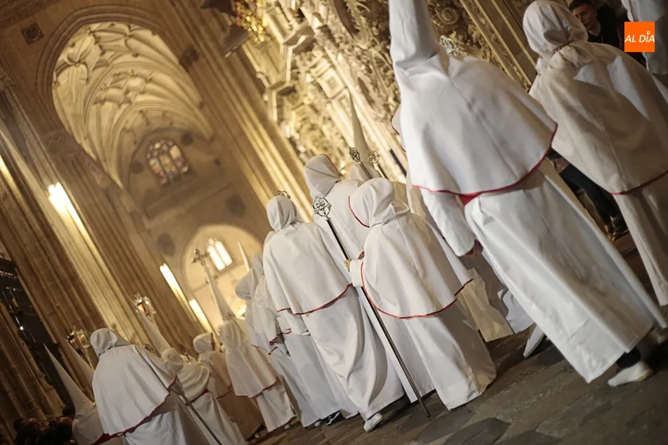 Miércoles Santo sin procesiones por la lluvia. La Real Cofradía Penitencial del Cristo Yacente de la Misericordia y de la Agonía Redentora tampoco han podido salir esta media noche por las calles del casco histórico de Salamanca. Cientos de personas esperaban la salida de los pasos que, finalmente, han permanecido en el interior de la Catedral. Tanto la Promesa del Silencio, en la que ha participado el alcalde de Salamanca, Carlos García Carbayo, como el Vía Crucis, se han celebrado dentro.