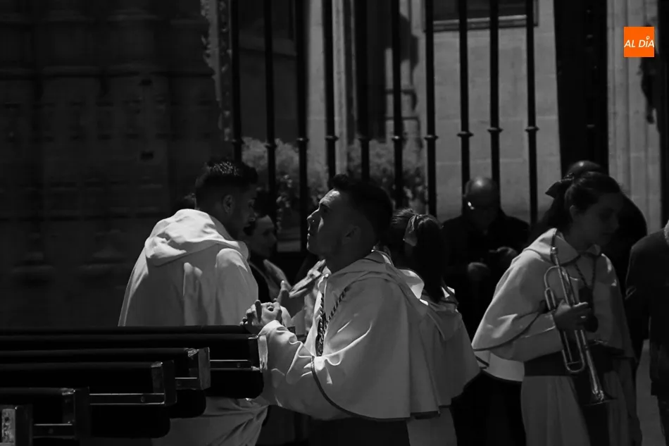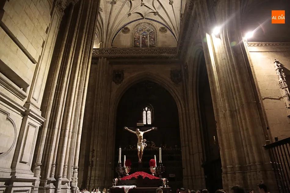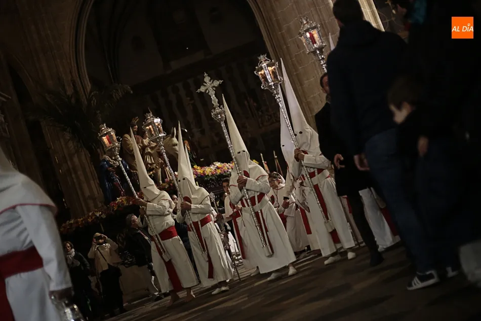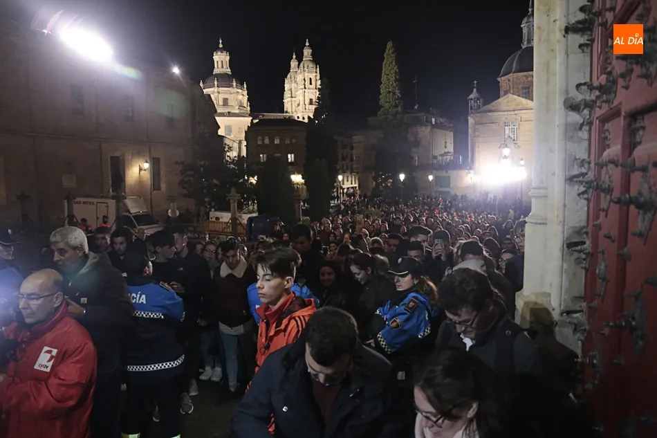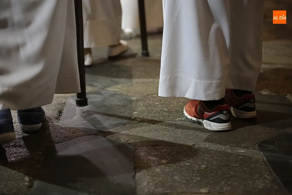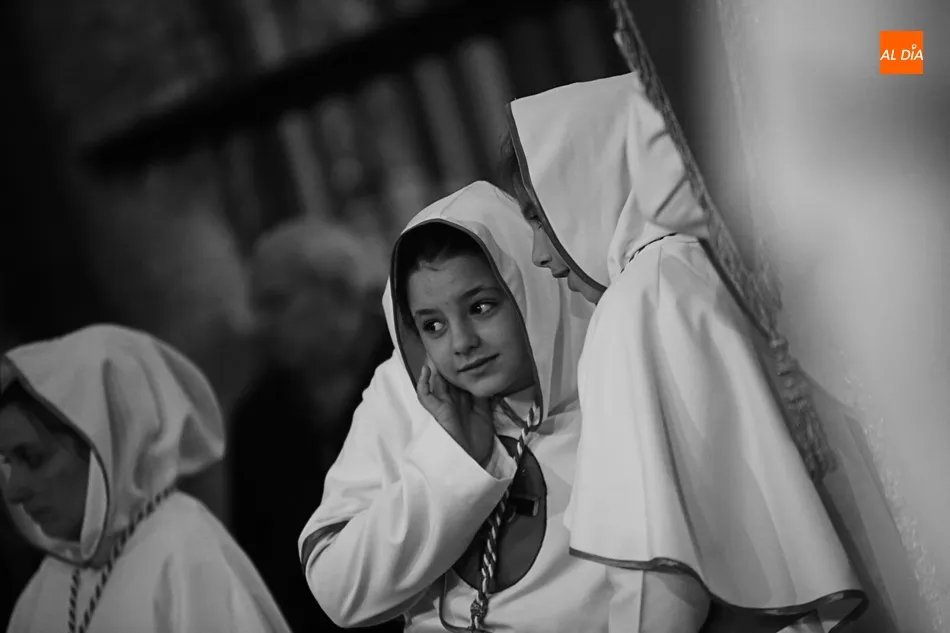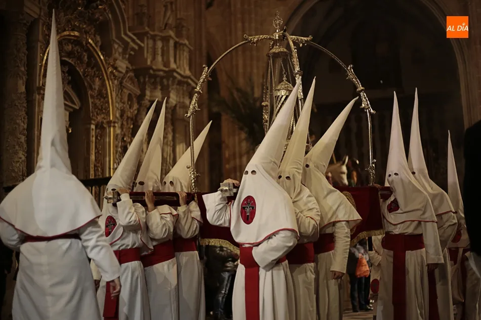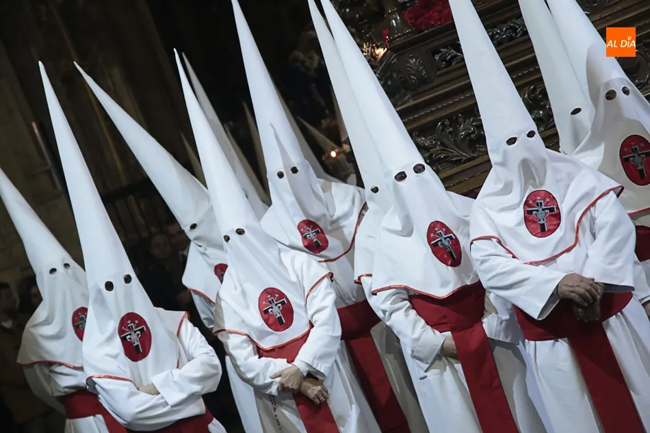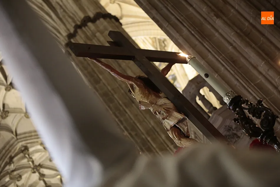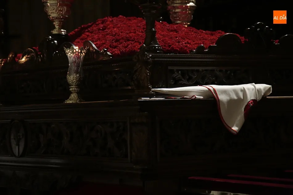 Miércoles Santo sin procesiones por la lluvia. La Real Cofradía Penitencial del Cristo Yacente de la Misericordia y de la Agonía Redentora tampoco han podido salir esta media noche por las calles del casco histórico de Salamanca. Cientos de personas esperaban la salida de los pasos que, finalmente, han permanecido en el interior de la Catedral. Tanto la Promesa del Silencio, en la que ha participado el alcalde de Salamanca, Carlos García Carbayo, como el Vía Crucis, se han celebrado dentro.