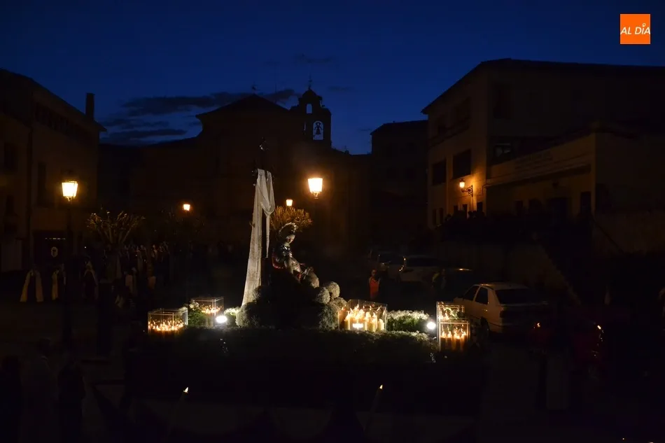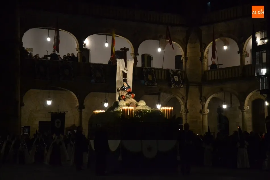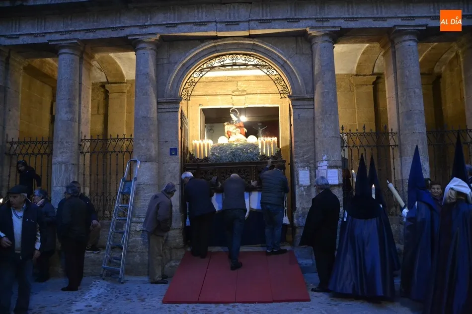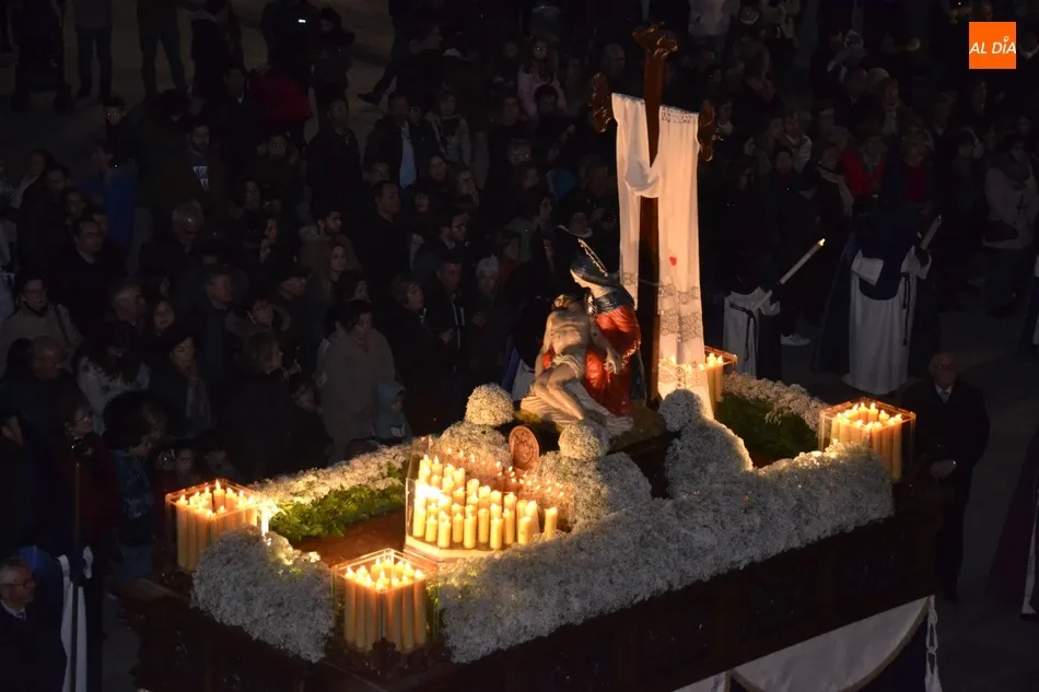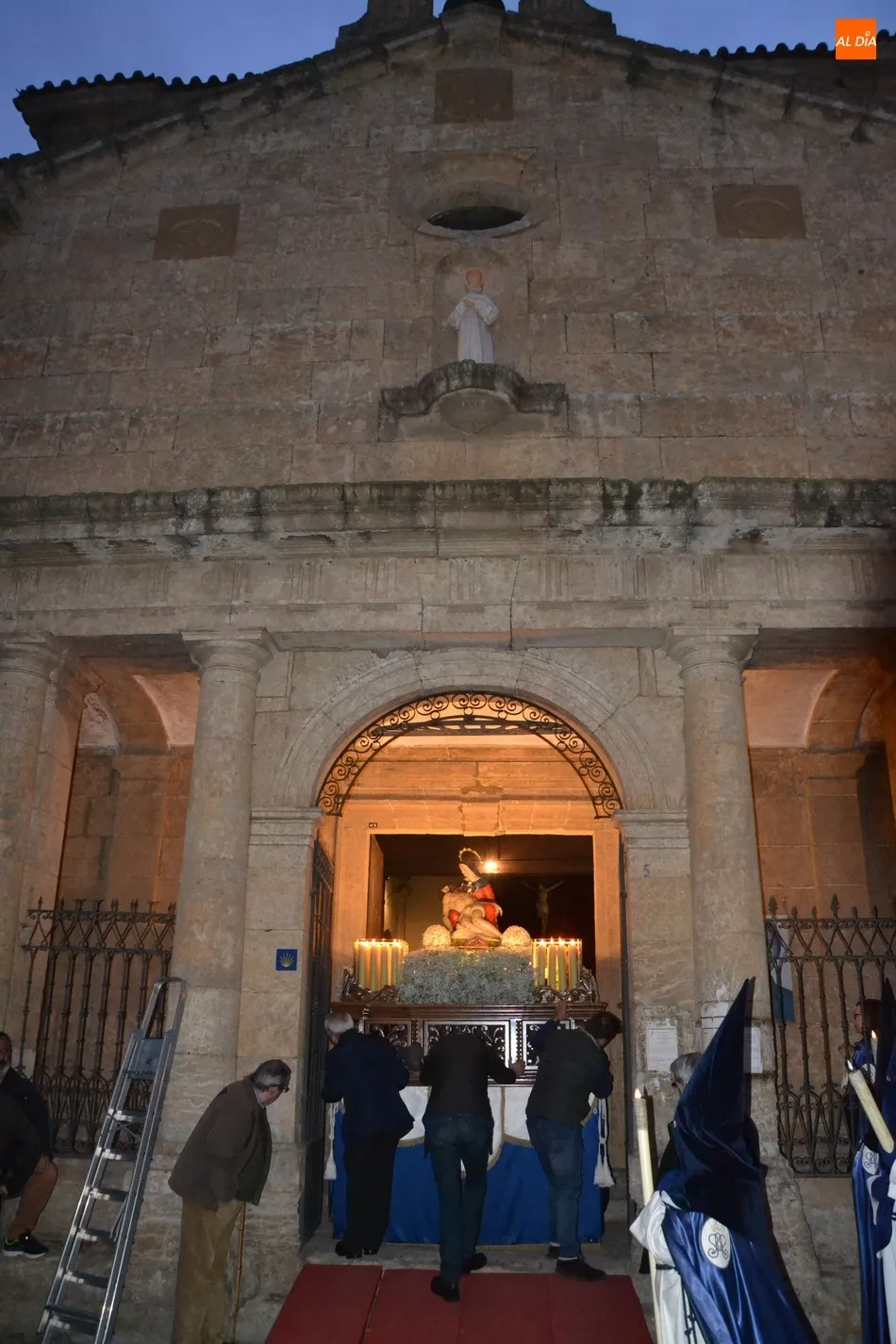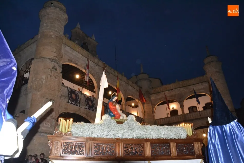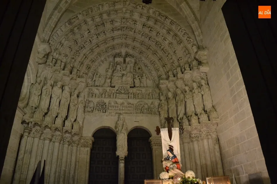 En aquel mismo pregón, Feliciano Sierro Malmierca apuntó que ?lo más probable? es que la imagen de la Virgen de las Angustias procediese del Convento de San Francisco, donde tenía su asiento la Cofradía de la Piedad. Lo que se sabe de la imagen es que es una escultura del siglo XVIII, apuntando Isidro Pérez Rodríguez (a partir de unos datos encontrados en un catálogo de una muestra del Museo Nacional de Escultura) que podría ser una Virgen realizada por José Larra Domínguez en 1729 por encargo de un canónigo de Ciudad Rodrigo.