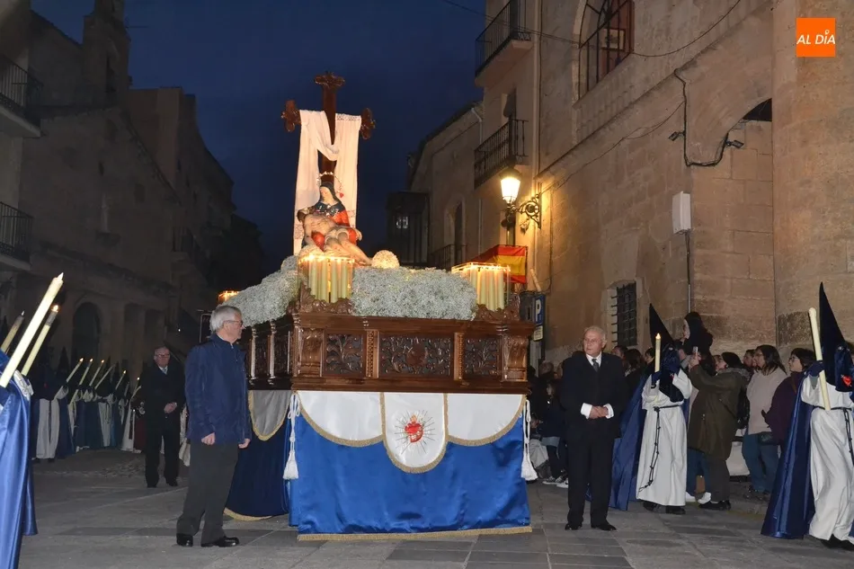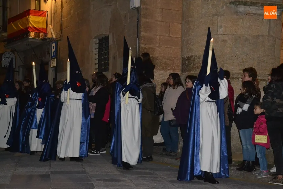 La jornada del Miércoles Santo tiene en Ciudad Rodrigo tono femenino, ya que son mujeres quienes integran en exclusiva la Cofradía de Nuestra Señora de las Angustias que procesiona este día. Se trata de la 2ª Cofradía más joven de la Semana Santa Mirobrigense (sólo por detrás de Jesús Amigo de los Niños), pero procesionan uno de los pasos más veteranos, del que se tiene constancia que salía a la procesión del Santo Entierro ya en el siglo XIX.