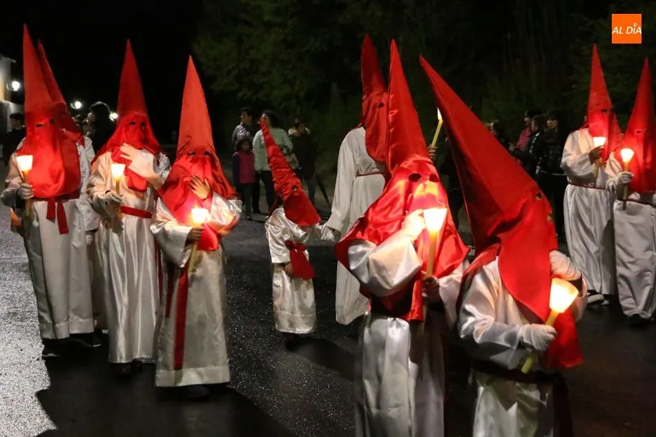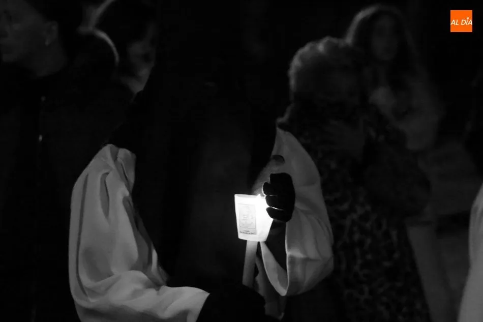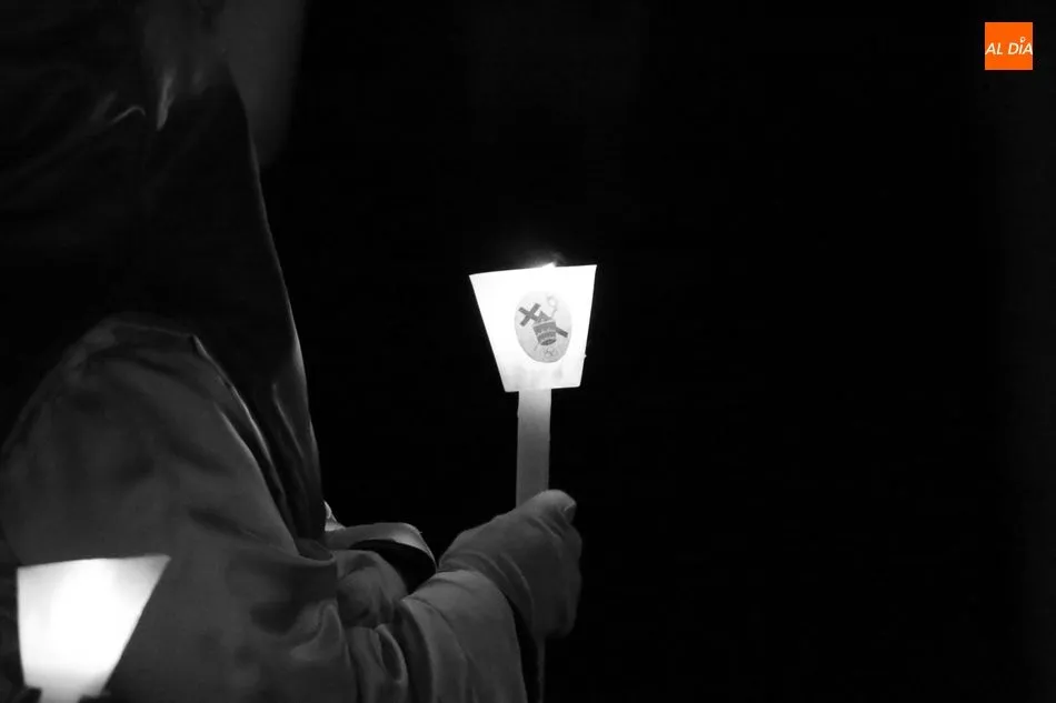 A partir de ese momento únicamente se escucharán las oraciones del sacerdote bajo la tenue luz de las velas eléctricas de los cofrades alumbrando el recorrido, momento en el que parece atenuarse la luz de los farolillos que iluminan el Paso. A los cofrades del Cristo de la Agonía les acompañan el resto, poniendo color a la noche con sus túnicas.