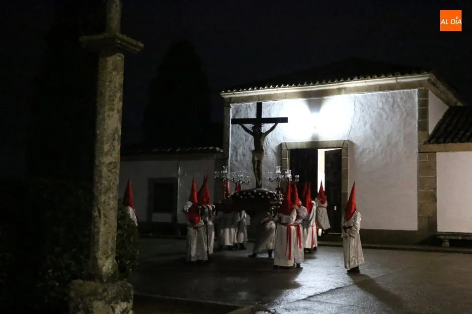 Pero antes de cargar a hombros con el Cristo de la Agonía, los cofrades hacen su particular procesión de ida desde la iglesia a la ermita, recorrido que también discurre dentro del más absoluto silencio.