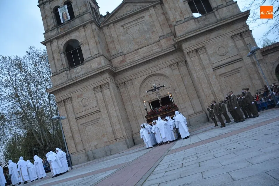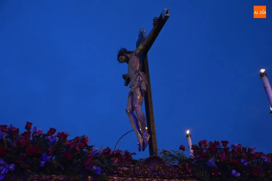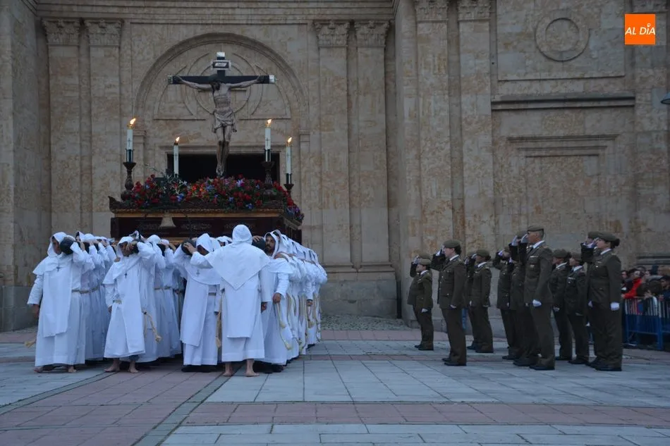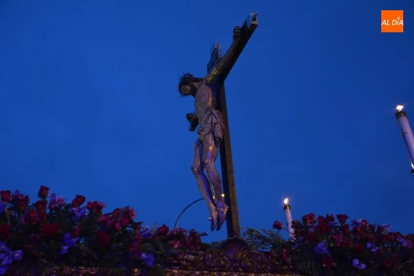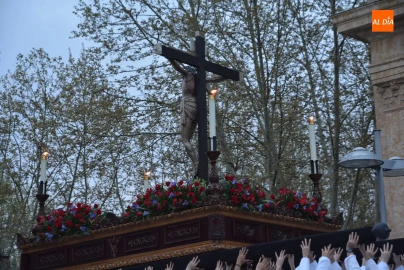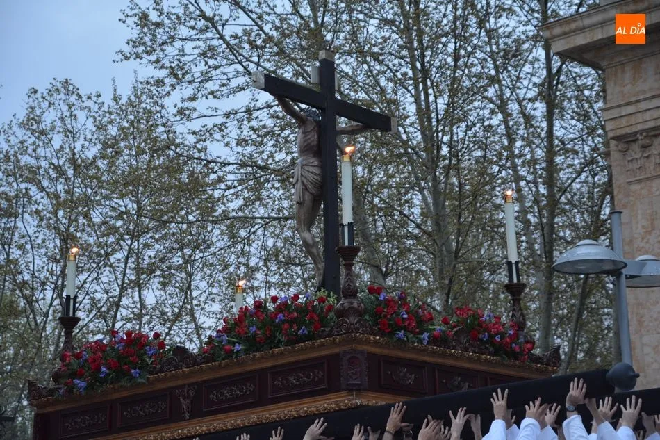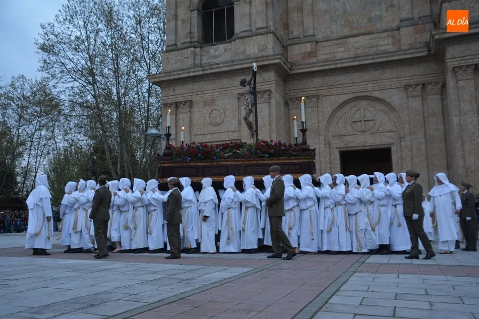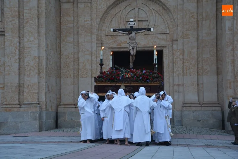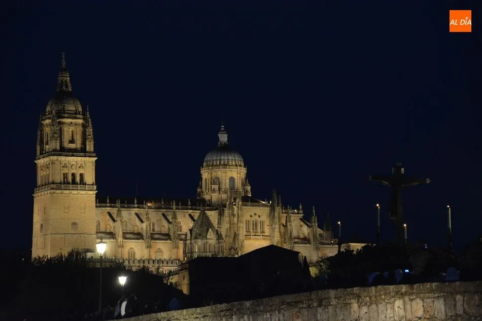 Con salida desde El Arrabal, pese al mal tiempo, numeroso público esperaba en el Puente Romano y proximidades para presenciar la subida espectacular por la empinada cuesta de la Calle Tentenecio, con el incienso, los faroles encendidos y la larga hilera de cruces. Sin embargo, el Cristo del Amor y de la Paz, junto a María Nuestra Madre, no ha podido atravesar el Tormes para adentrarse en la ciudad en una estampa única en la Semana Santa salmantina.
