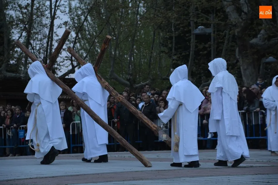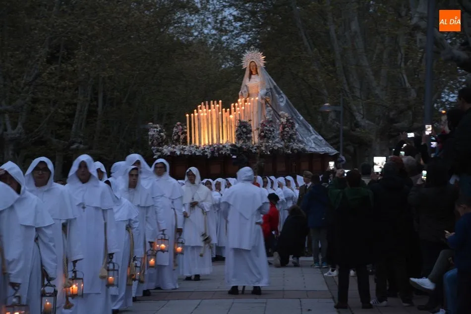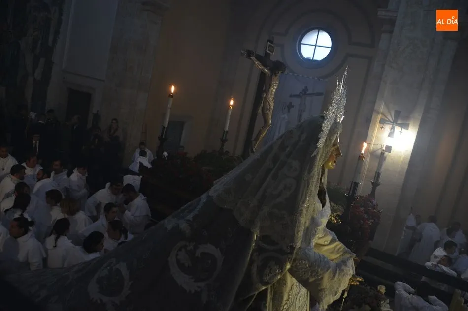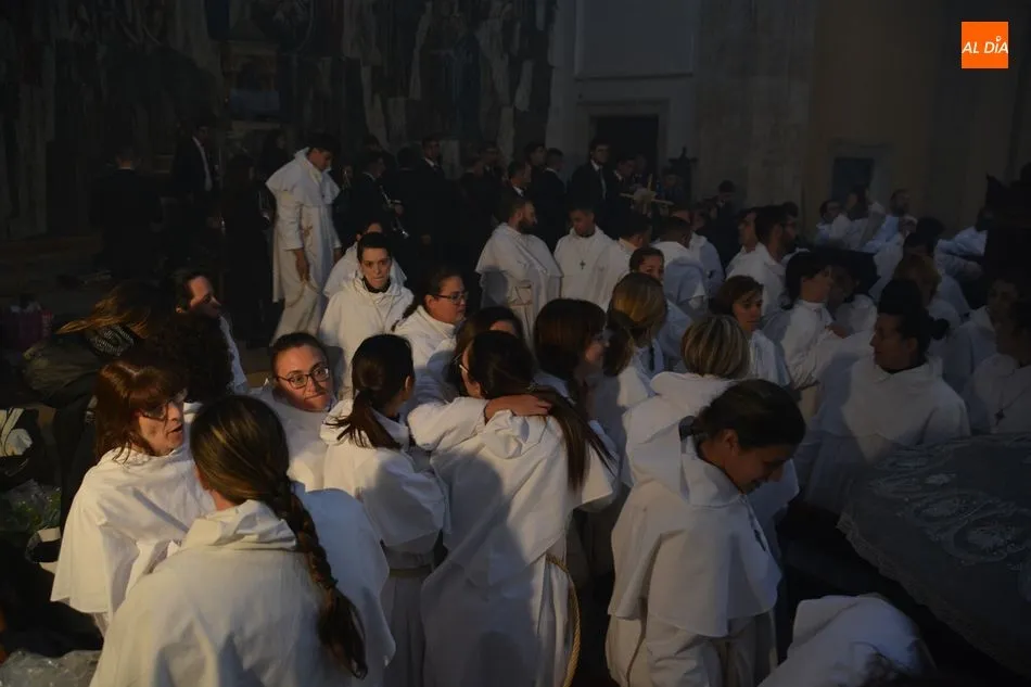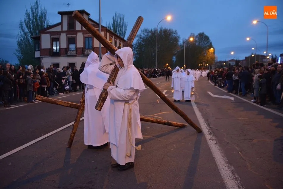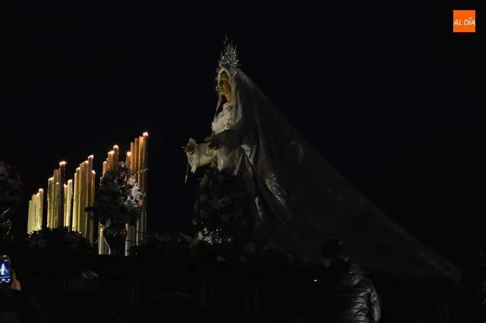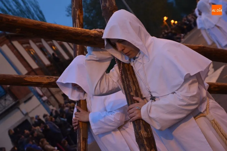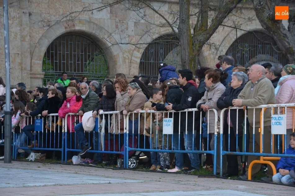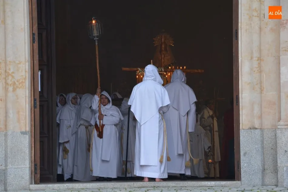 Con salida desde El Arrabal, pese al mal tiempo, numeroso público esperaba en el Puente Romano y proximidades para presenciar la subida espectacular por la empinada cuesta de la Calle Tentenecio, con el incienso, los faroles encendidos y la larga hilera de cruces. Sin embargo, el Cristo del Amor y de la Paz, junto a María Nuestra Madre, no ha podido atravesar el Tormes para adentrarse en la ciudad en una estampa única en la Semana Santa salmantina.