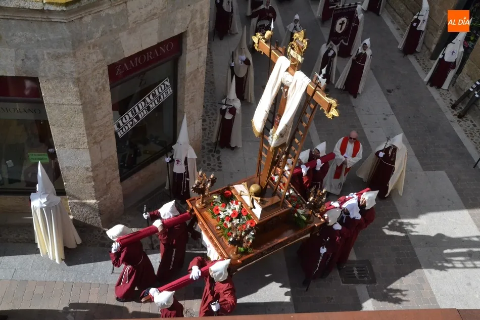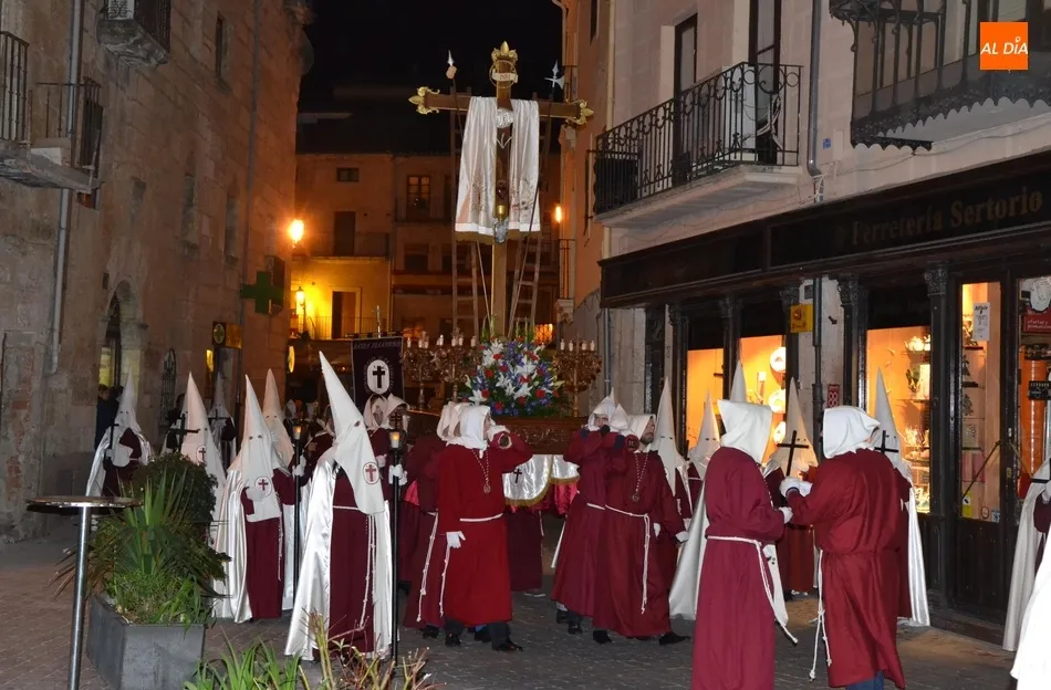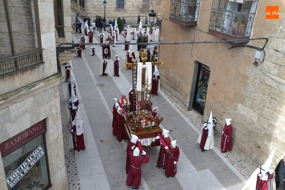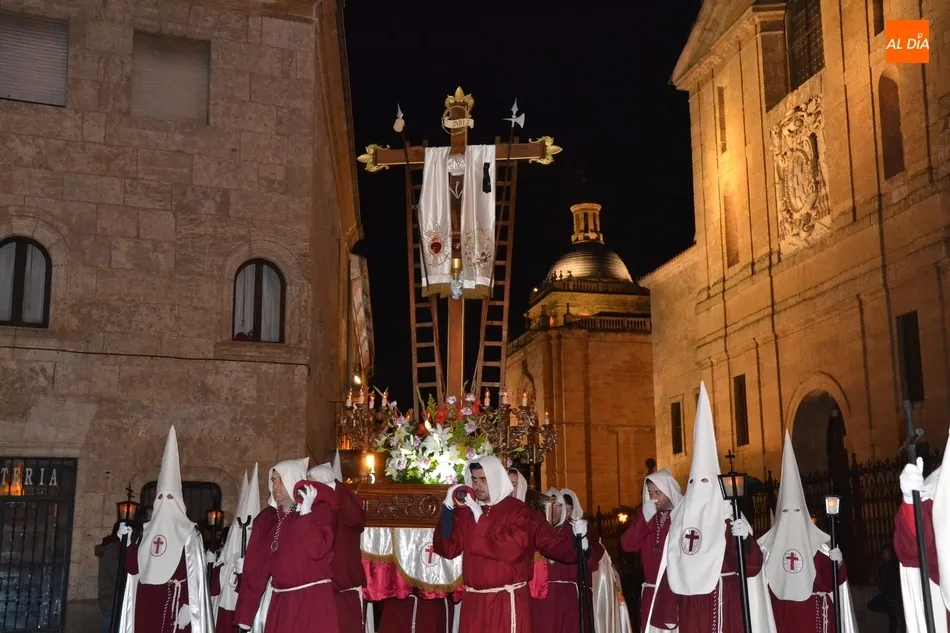 En lo que respecta a su paso titular, la Santa Cruz, llevan más de un siglo procesionando el paso actual, que no es el original. Según explicó José Ramón Cid Cebrián en su pregón de la Semana Santa 2015, recopilando datos de la publicación La Semana Santa en Ciudad Rodrigo de 1946, la entidad se fundó en el año 1895 en la hojalatería del señor Joaquín Martín García, cuando a éste le encargó don José Cervera (fundador y primer presidente de la Cofradía de Jesús Nazareno) una cruz de zinc para sustituir la ?pesada cruz de madera? del paso del Nazareno.