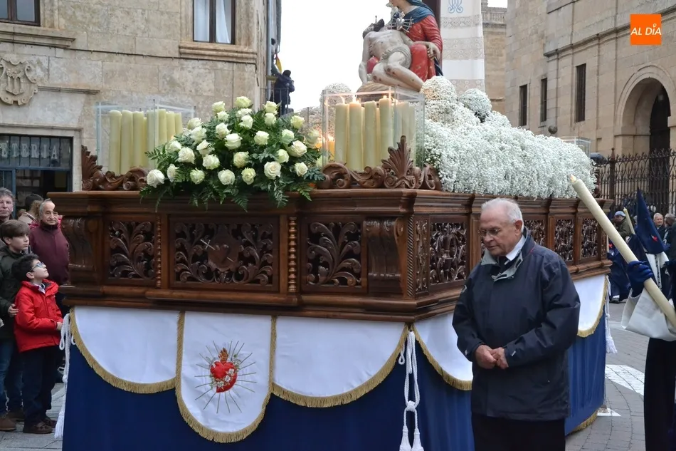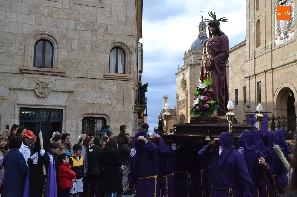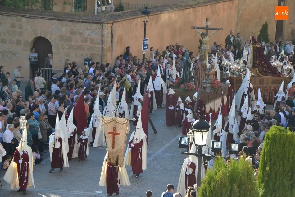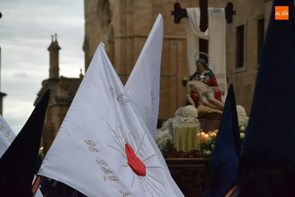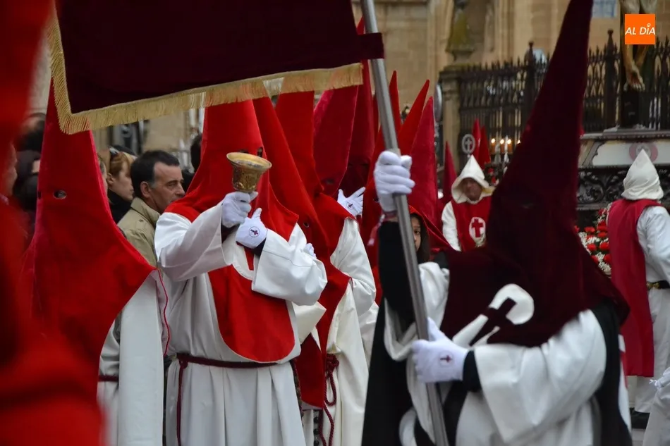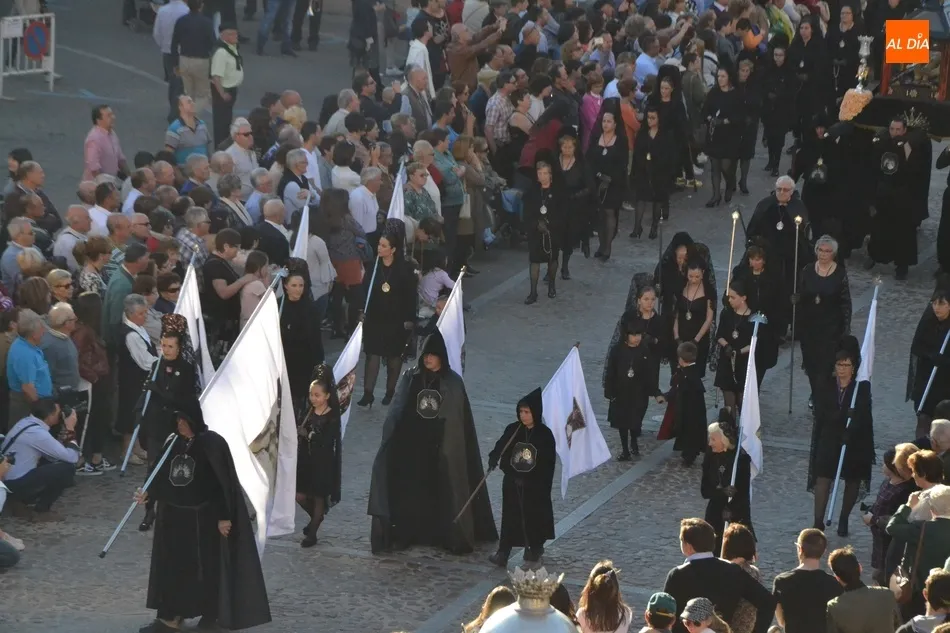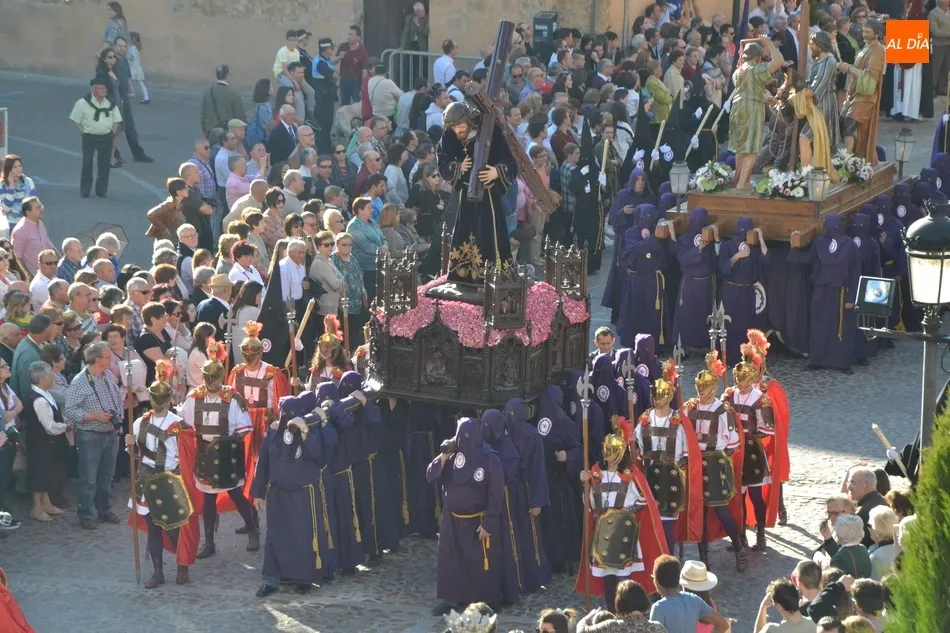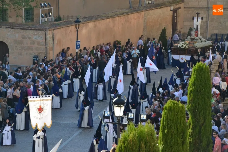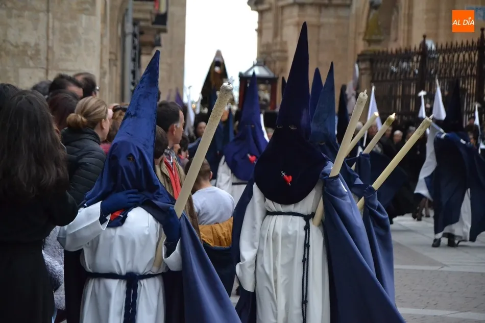 Allí se reunían con el Santo Sepulcro y la imagen de La Soledad (que salían por la Puerta de las Cadenas), para hacer un trayecto por las siguientes calles: Plaza de San Salvador, Campo del Gallo, calle de Pendabales (General Pando), calle del Príncipe, Campo del Carro, Plazuela del Lirio, calle de los Colegios, y Campo del Trigo (Plazuela Cristóbal de Castillejo), para entrar por la puerta principal de la Iglesia de San Pedro, atravesarla y salir a la calle de Gigantes, para continuar hacia la Plaza Mayor, calle de la Tabernilla (calle Madrid), Plaza del Conde, y calle Cadimus para entrar en la Catedral por la Puerta del Enlosado.