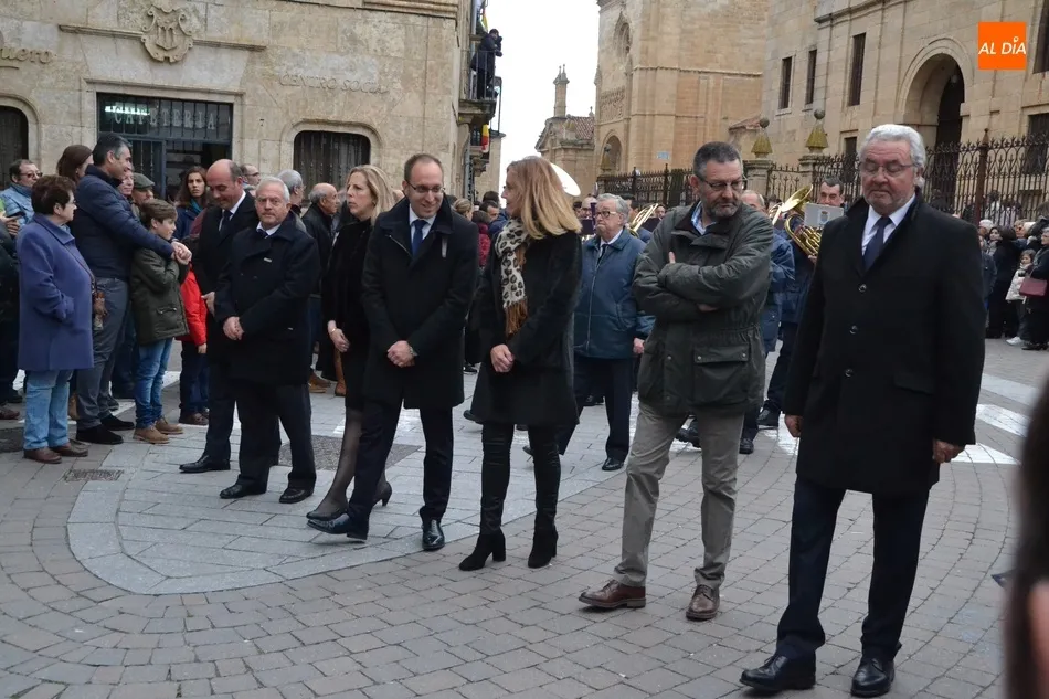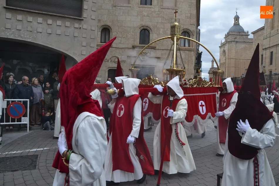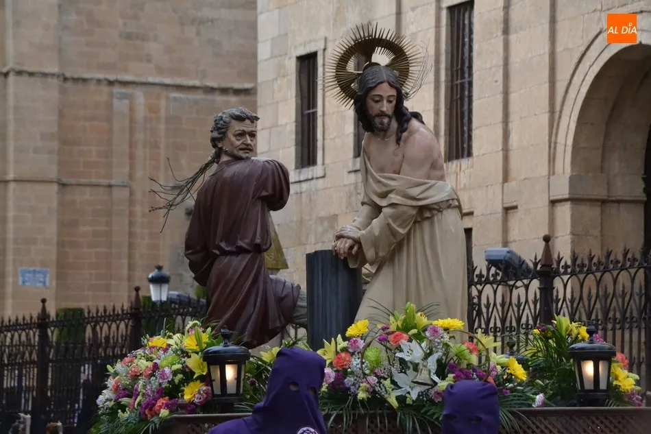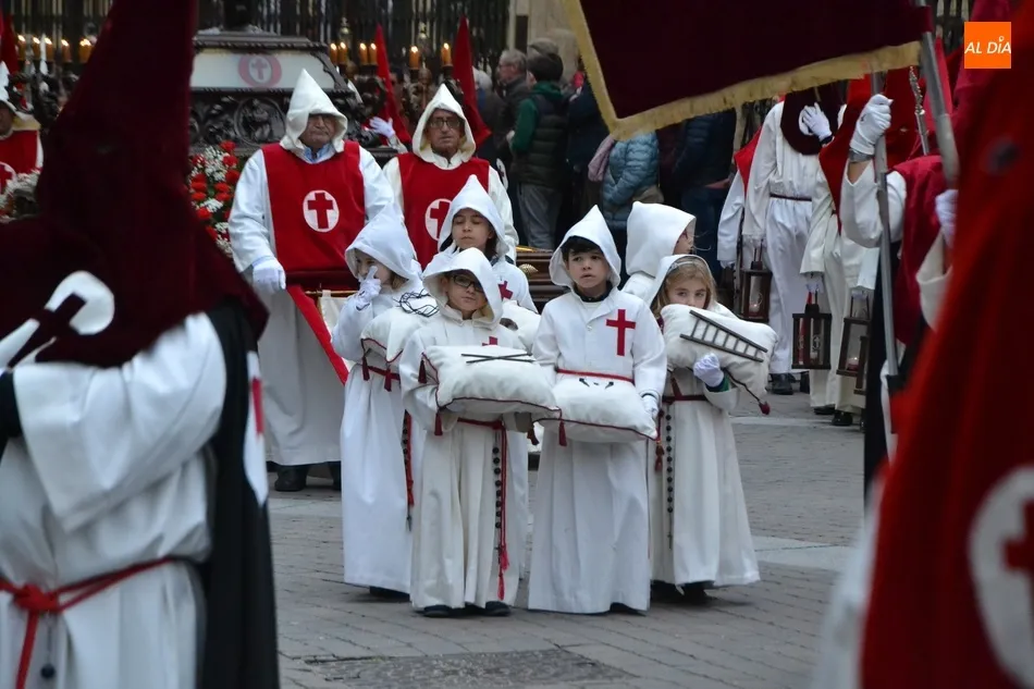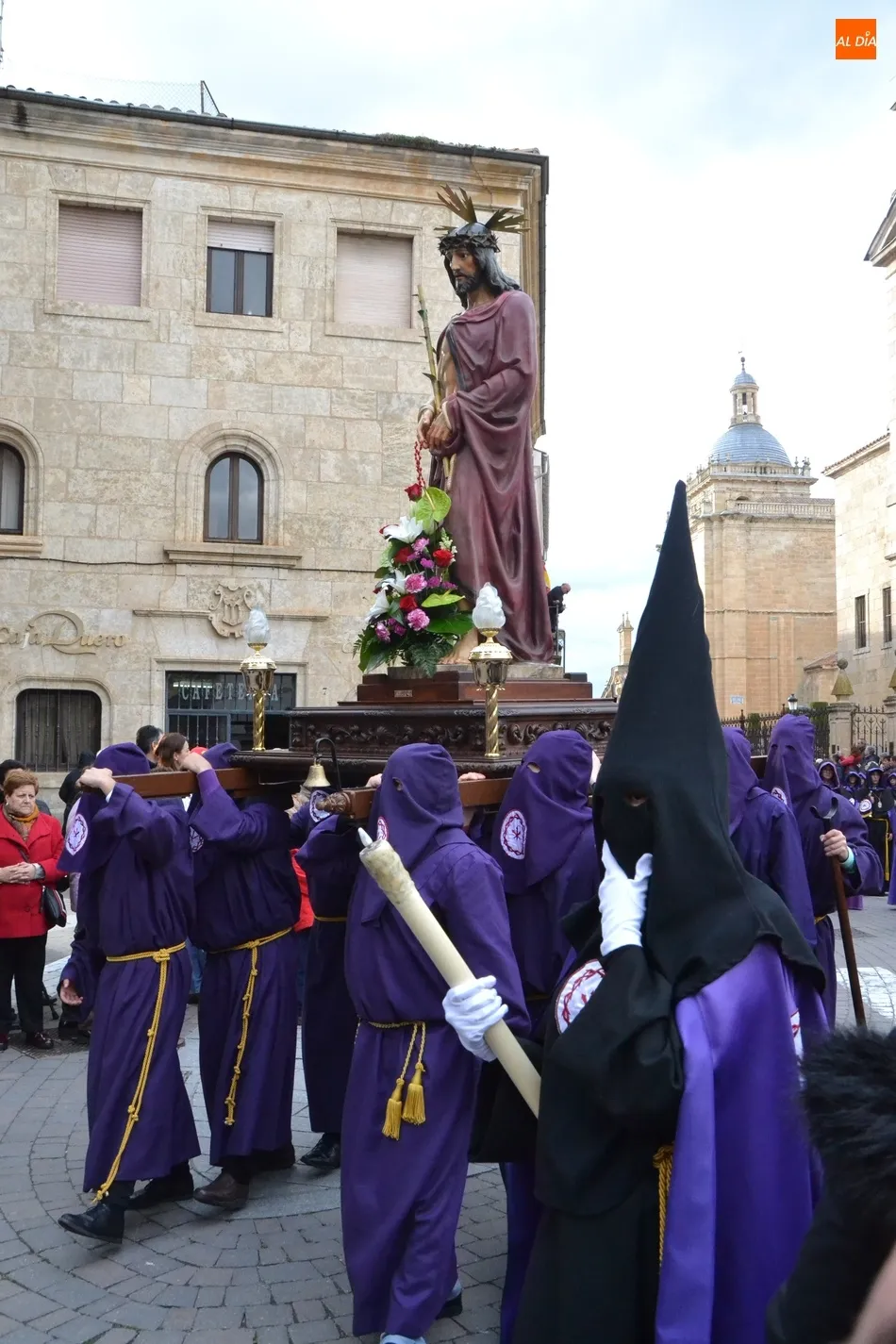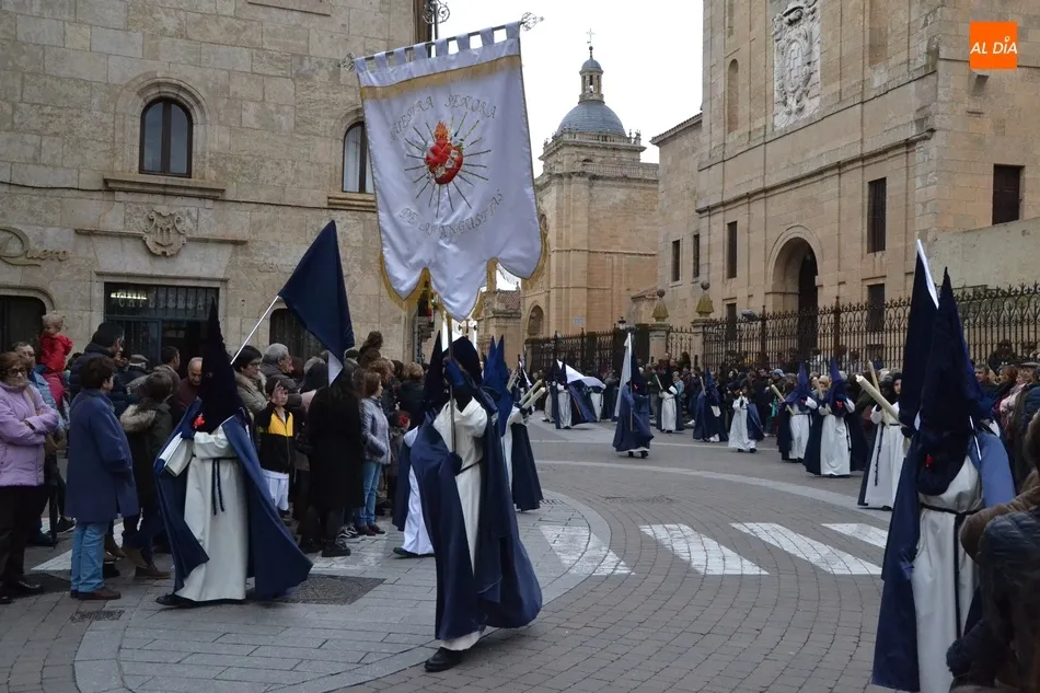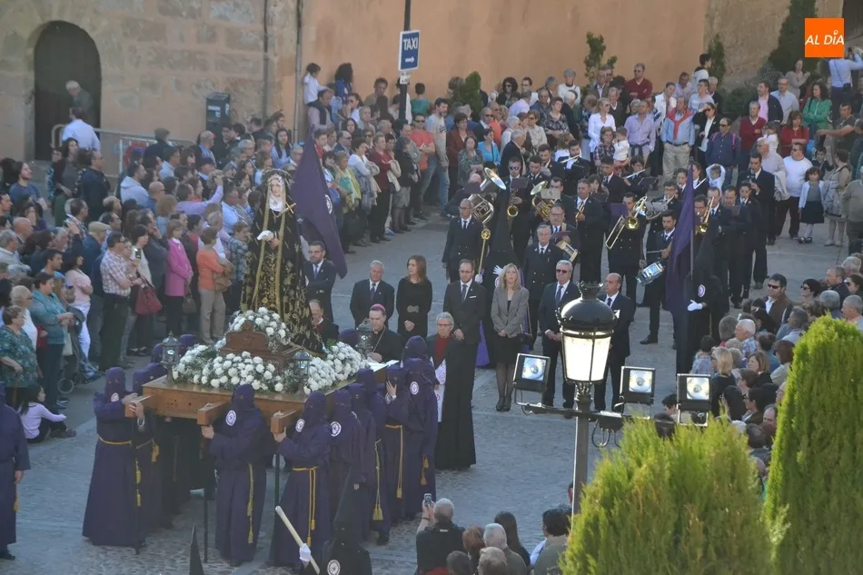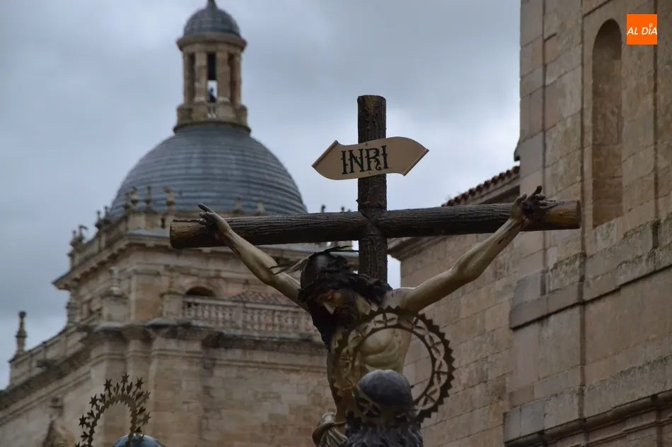 Allí se reunían con el Santo Sepulcro y la imagen de La Soledad (que salían por la Puerta de las Cadenas), para hacer un trayecto por las siguientes calles: Plaza de San Salvador, Campo del Gallo, calle de Pendabales (General Pando), calle del Príncipe, Campo del Carro, Plazuela del Lirio, calle de los Colegios, y Campo del Trigo (Plazuela Cristóbal de Castillejo), para entrar por la puerta principal de la Iglesia de San Pedro, atravesarla y salir a la calle de Gigantes, para continuar hacia la Plaza Mayor, calle de la Tabernilla (calle Madrid), Plaza del Conde, y calle Cadimus para entrar en la Catedral por la Puerta del Enlosado.