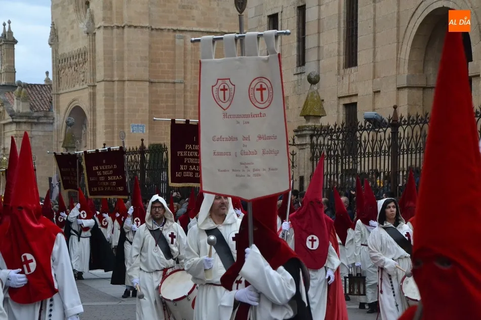A continuación, procesiona la Hermandad del Santísimo Cristo de la Expiración-Cristo del Silencio, con su Cristo y su incensario, seguida de la Ilustre Cofradía de la Santa Cruz, con sus tres pasos (El Calvario, Nuestra Señora de la Cruz y la Santa Cruz), y de la Cofradía de Nuestra Señora de las Angustias con su Virgen. Ahí aparece el mencionado Jesús Yacente de la Cofradía de La Soledad seguido de la Virgen Dolorosa de la Cofradía de Jesús Nazareno, acompañados estos dos pasos de autoridades civiles y religiosas. La comitiva la cierra todos los años la Banda Municipal de Música.
