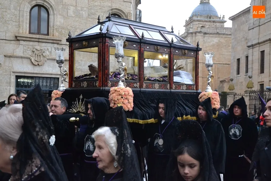 El Jesús Yacente ocupa un hueco en la parte final de la larga comitiva, que parte de la Catedral de Santa María y que sigue el orden cronológico de los hechos de La Pasión. De este modo, se abre con la Cofradía de Jesús Amigo de los Niños con su Borriquilla; seguida de la Cofradía de la Oración del Huerto, que sale de la Iglesia de Cerralbo con su imagen de Jesús orando en el Huerto de Los Olivos y el Cautivo. Le sigue la Cofradía de Jesús Nazareno con Los Azotes, el Ecce Homo, Jesús Nazareno y La Caída.