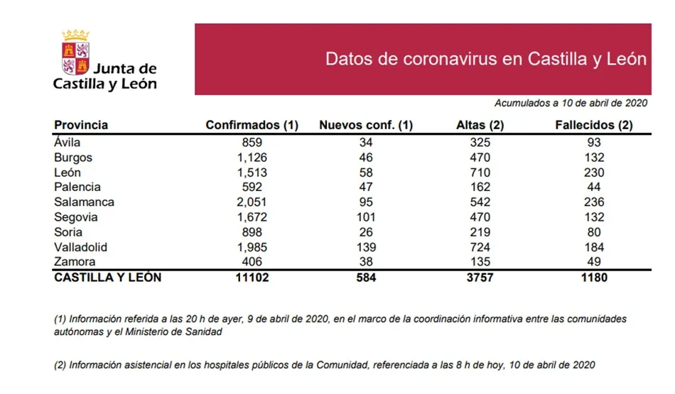 En cuanto a altas, un total en Salamanca, se han recuperado de la enfermedad un total de 542 personas.
