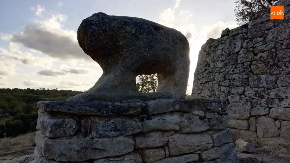 Guardando la puerta vetona, se alza la escultura de un verraco, el símbolo de la cultura vetona.