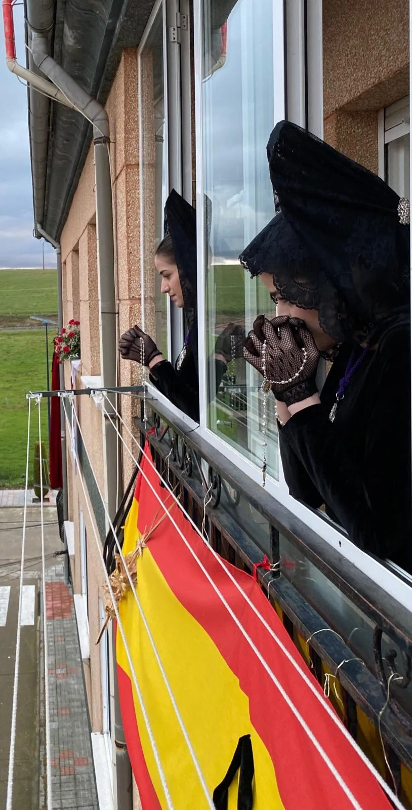 Para esa procesión, hubo vecinas de la calle Bailén que se pusieron mantilla. Como llegado el momento de los aplausos diarios de las 20.00 horas, no había finalizado el desfile, se detuvieron los pasos para aplaudir y posteriormente retomar La Carrera, que se acabó prolongando hasta las 21.00 horas. Para rematar, en la noche del viernes desfiló la Virgen de La Soledad.