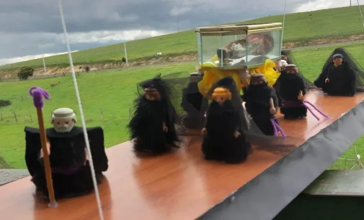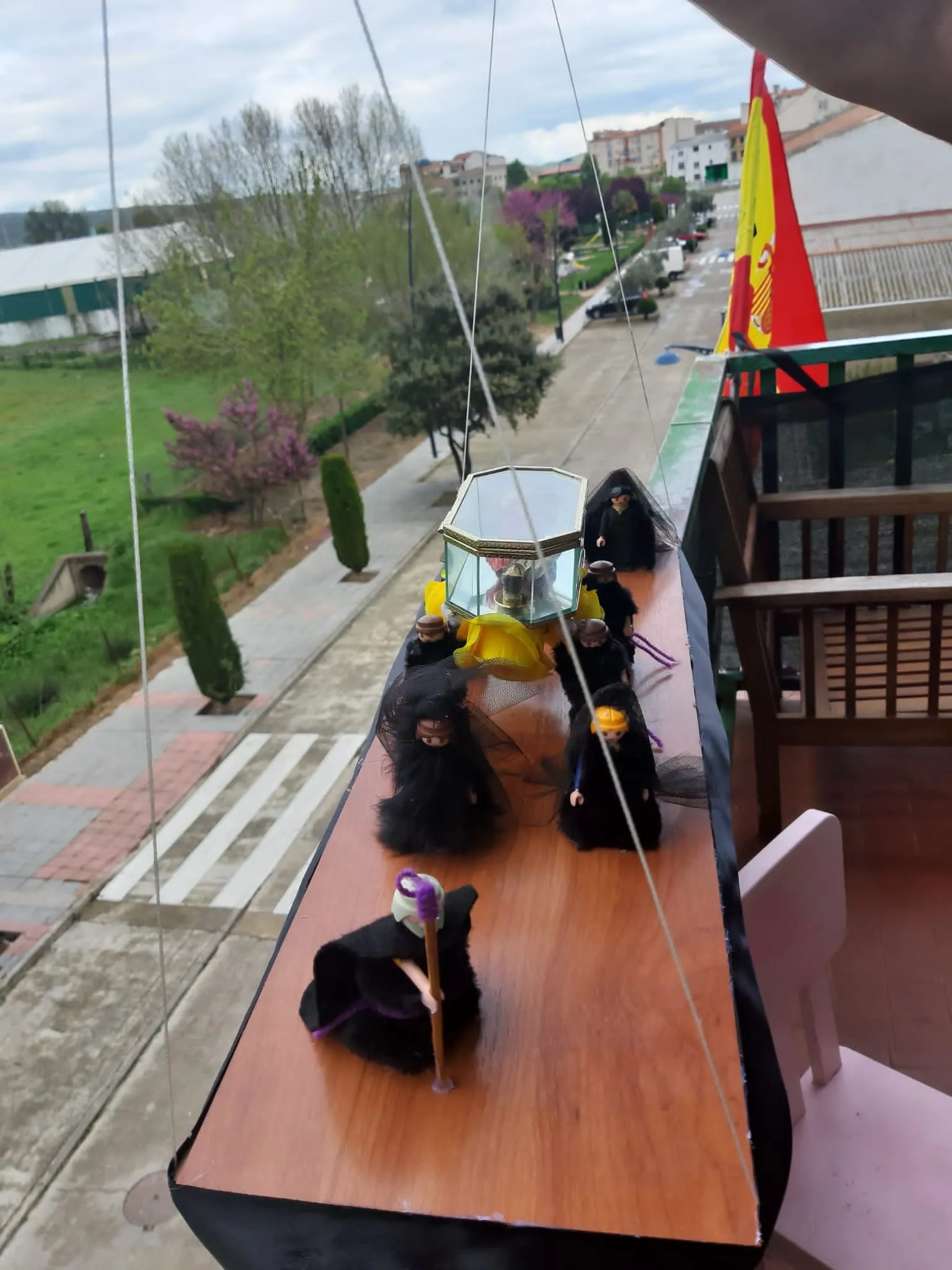 La calle Bailén de Ciudad Rodrigo ha vivido unas intensísimas jornadas de Jueves y Viernes Santo, con hasta tres desfiles aéreos cada uno de esos días de un lado a otro de la vía, en los que han procesionado pasos elaborados por el joven Rubén Pérez de Burgos, mientras sonaba en la mayoría de los casos música interpretada por Ángel Luis Zamarreño con la trompeta.