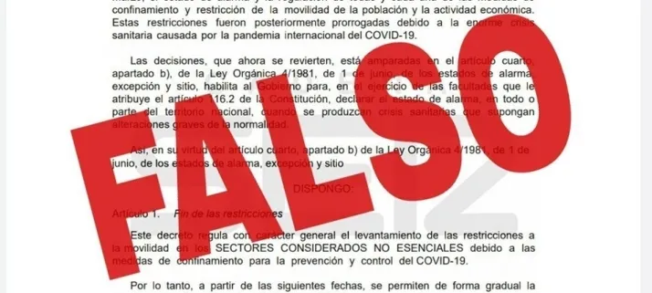 El Gobierno ha advertido ayer sábado de un bulo que está circulando por las redes sociales sobre una publicación en el Boletín Oficial del Estado (BOE) en la que aparecen fechas del levantamiento de algunas de las restricciones recogidas en el estado de alarma con motivo del coronavirus.