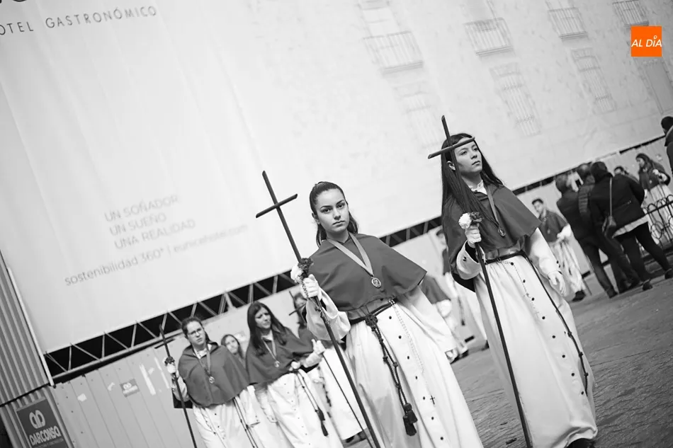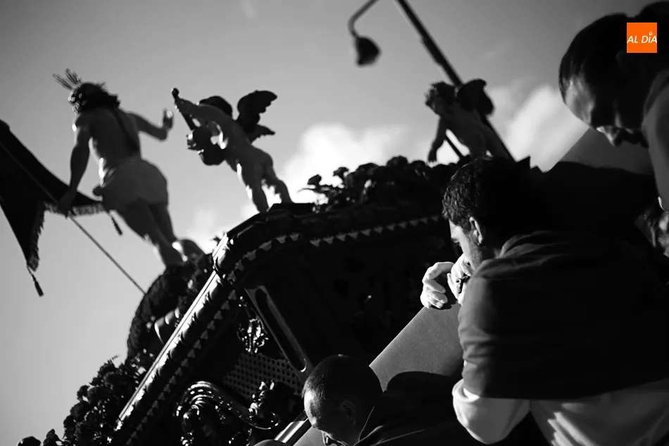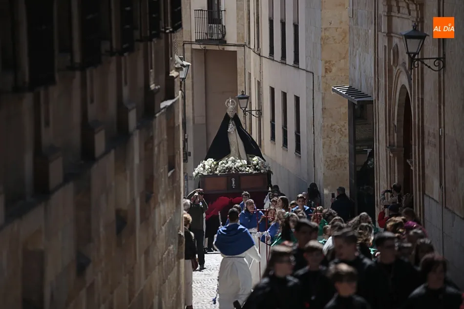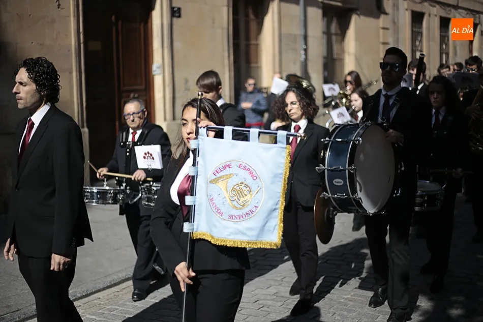 La música y una rotunda ovación de los miles de asistentes congregados ha vuelto a emocionar a salmantinos y turistas que han acompañado a los cofrades en este último desfile de la Semana Santa de Salamanca.