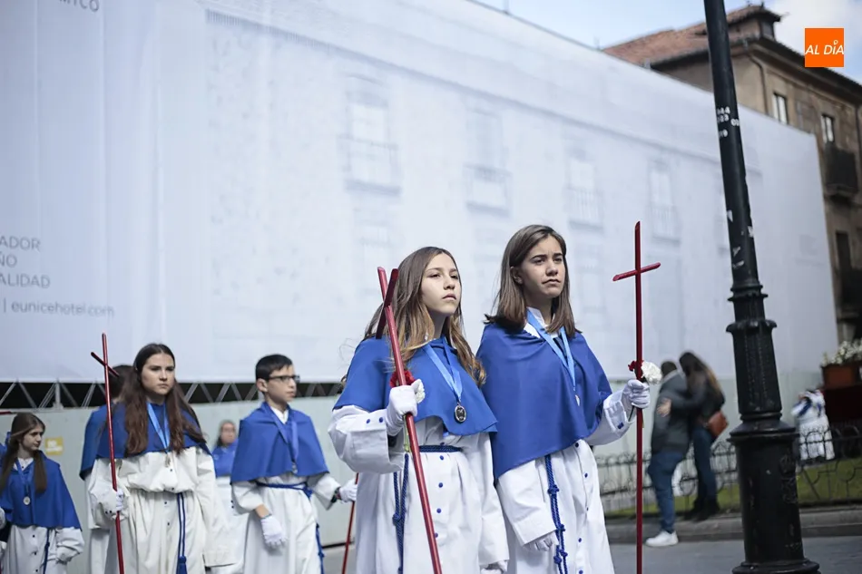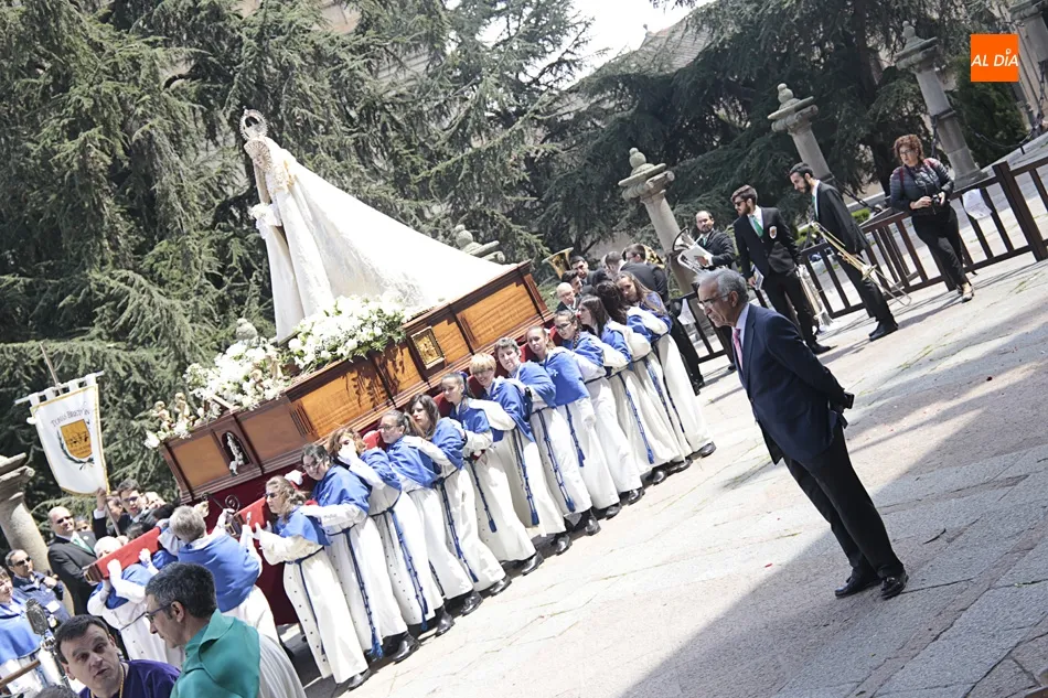 Las imágenes de la Virgen de la Alegría y del Jesús Resucitado partieron esta mañana de la Iglesia de la Vera Cruz antes de encontrarse en el Atrio de la Catedral