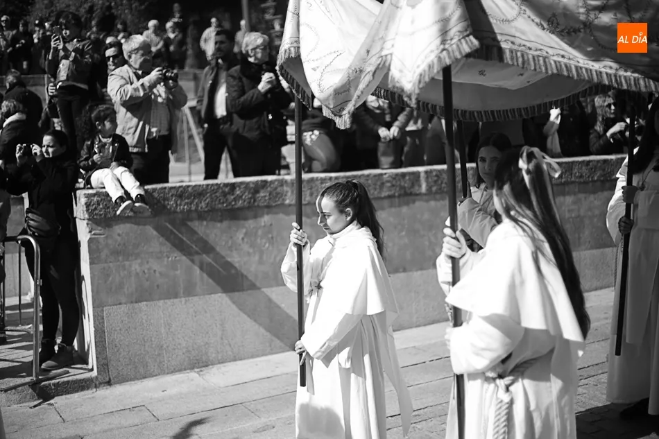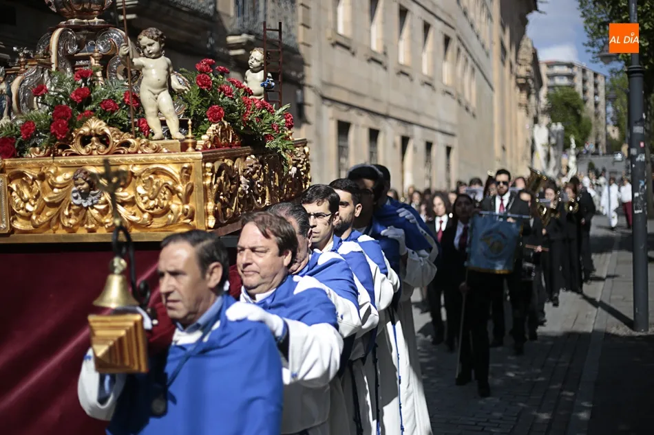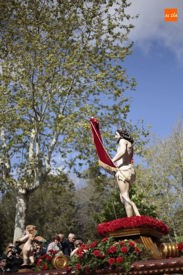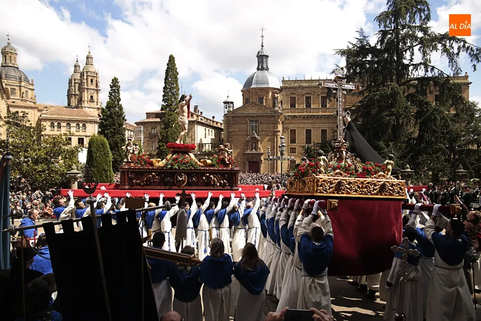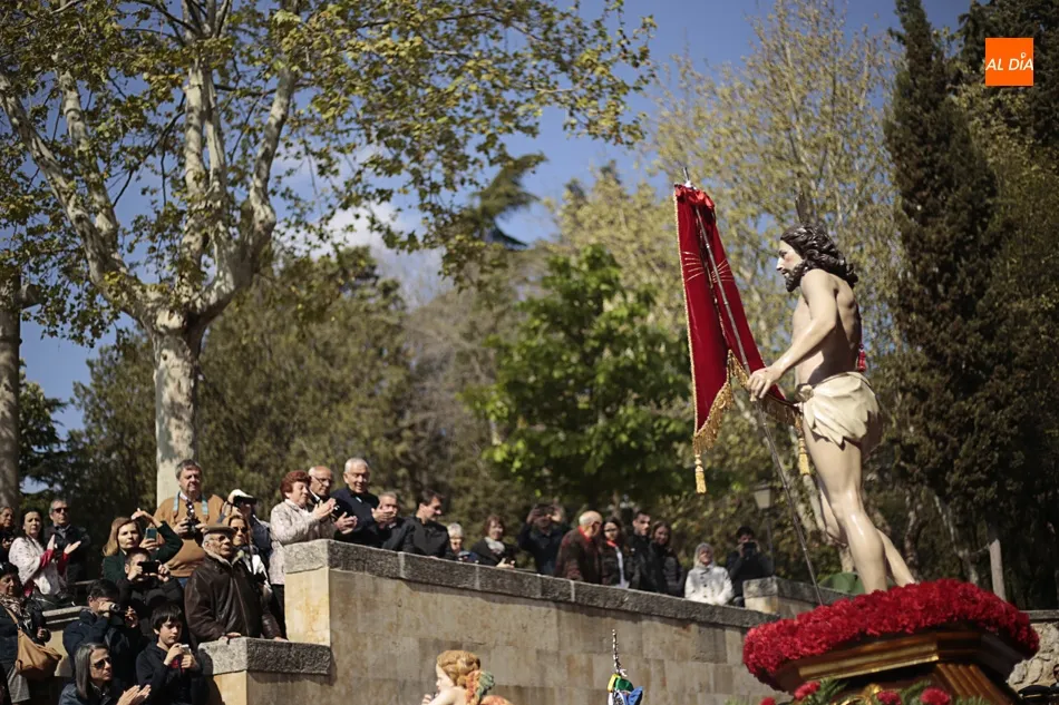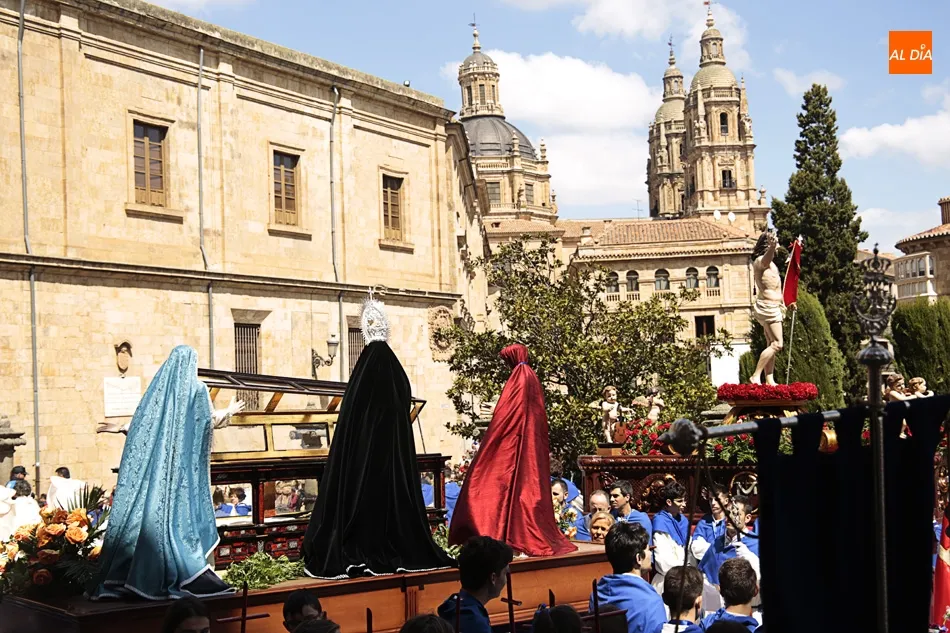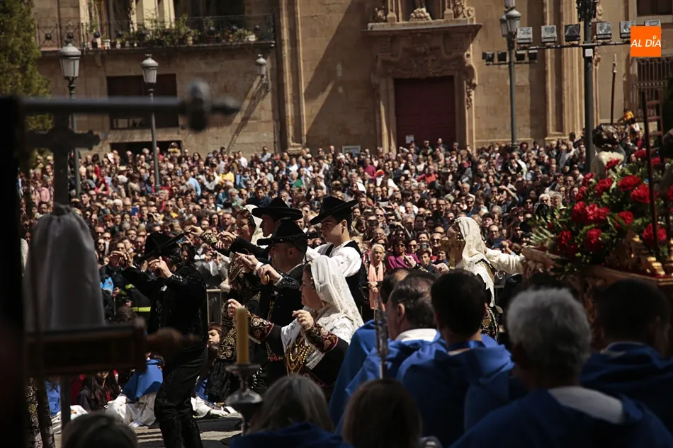 La Semana Santa salmantina llegaba a su fin este Domingo de Resurrección con el esperado acto del Encuentro que ha estado acompañado por el sol y por una agradable temperatura. Es uno de los acontecimientos más arraigados en la tradición religiosa de la capital charra y se trata de la segunda procesión más antigua de Salamanca con la que se despide una intensa semana de Pasión.