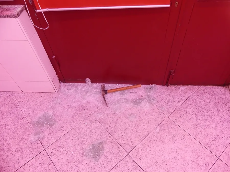 Una vez allí, los policías comprobaron que la carnicería tenía el escaparate fracturado y en la acera encontraron la piqueta de obra que la pareja presuntamente había utilizado para acceder al interior.