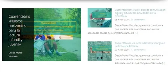 El proyecto ?Cuarentébinar? es una iniciativa de formación solidaria que parte de Mares Virtuales, en la que reconocidos profesionales del mundo de la biblioteca aportan su visión sobre distintos temas, como la Lectura Juvenil Digital, el mantenimiento de las colecciones o las bibliotecas desde el ámbito de la comunicación.