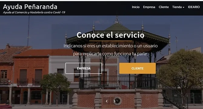 www.ayudapeñaranda.es y pretende ser un espacio en el que se puedan ofrecer consumiciones y productos en pre-venta a los usuarios, accediendo a la plataforma de manera gratuita a través de una inscripción, pudiendo pagar directamente al empresa