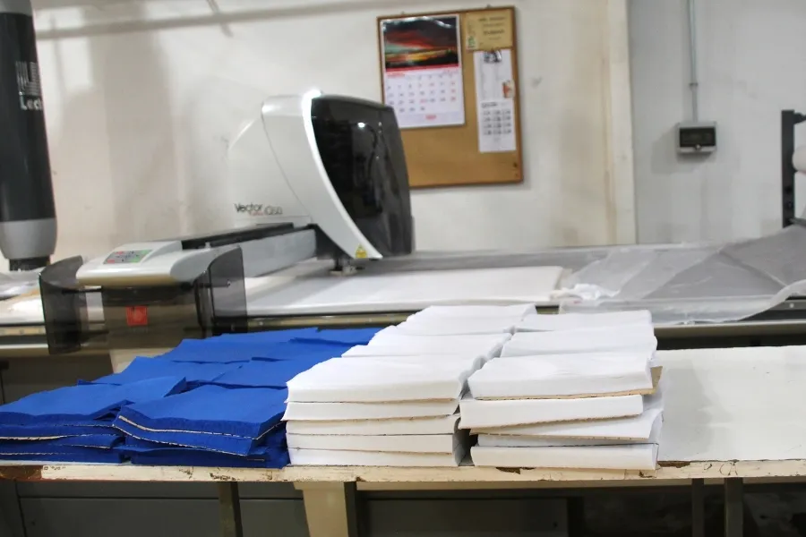 La actividad fue frenética desde el primer momento. ?A medida que se iba recibiendo el tejido, nuestros trabajadores de todas las secciones colaboraban para prepararlo de inmediato y alimentar el equipo de corte automático que se iba desplazando de mesa en mesa para no parar ni un momento. Mientras unos estiraban el tejido en unas mesas, la máquina cortaba y otro equipo recibía las piezas para embalar y enviar a talleres?.