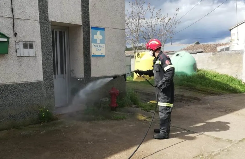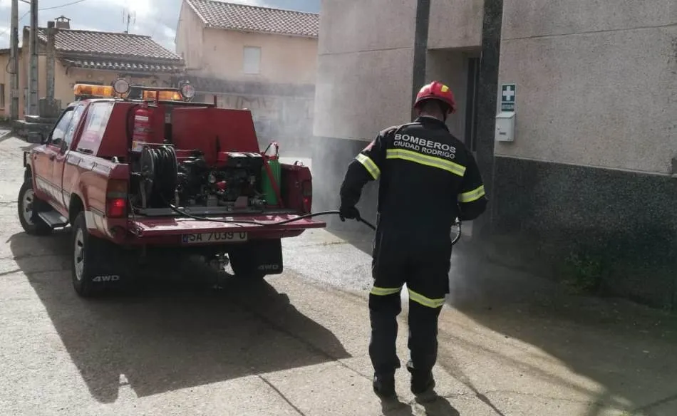 Los Bomberos de Ciudad Rodrigo continúan contribuyendo en diversos frentes a la lucha contra la propagación del coronavirus. Por un lado, en la jornada del martes llevaron a cabo nuevas tareas de desinfección en localidades de la comarca mirobrigense como Villar de Argañán o La Alameda de Gardón.