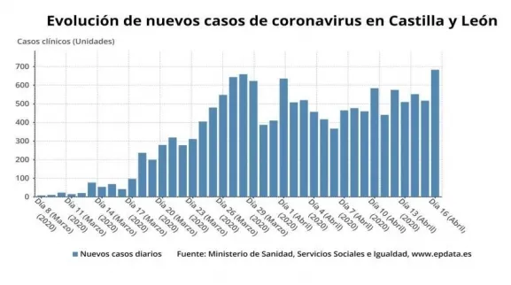 Castilla y León ha sumado 523 nuevos casos confirmados de personas infectadas por coronavirus, lo que supone 160 más que en la jornada anterior (683), con lo que la cifra total asciende a 14.903, según los datos aportados a las 13.00 horas de este viernes, 17 de abril, por la consejera de Sanidad, Verónica Casado.