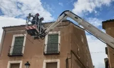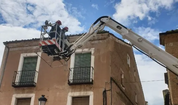 Además de continuar con las labores de desinfección por distintos pueblos de la comarca mirobrigense para evitar en la medida de lo posible la propagación del coronavirus, los Bomberos de Ciudad Rodrigo tuvieron que realizar en la jornada del lunes una salida más propia de sus tareas habituales hasta la calle Díez Taravilla, en el centro histórico mirobrigense, ante un requerimiento realizado por un vecino.
