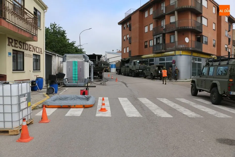 Personal del Regimiento RNBQ ?Valencia 1? procedía este lunes a la desinfección de la Residencia Geriátrica de Vitigudino situada en la calle La Reguerita. Hasta el lugar se han desplazado efectivos de esta unidad con sede en Paterna (Valencia) y especializada en la defensa ?contra agresivos de carácter nuclear, biológico y químico?.