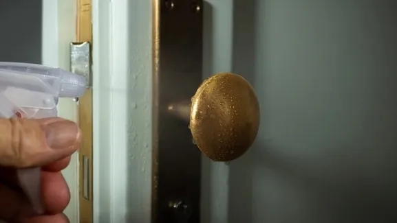 Usar agua y jabón (o un limpiador común) en caso de superficies que se toquen muy frecuentement y en el baño, después del paso anterior, desinfectar. Para ello, si usas lejía, mezclar 20 ml de lejía con 980 ml de agua, justo antes de limpiar. Dejar actuar 5 minutos y aclarar.